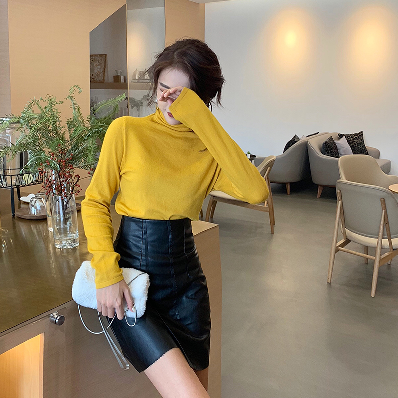 chic秋季新款韓版上衣女裝百搭修身顯瘦高領長袖復古針織打底衫潮