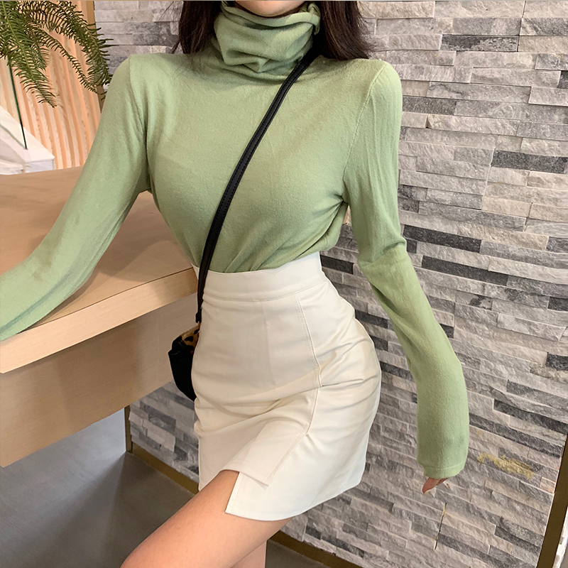 / chic秋季新款韓版上衣女裝百搭修身顯瘦高領長袖復古針織打底衫潮