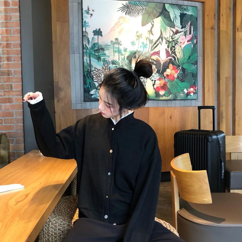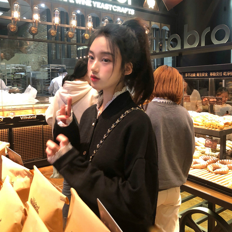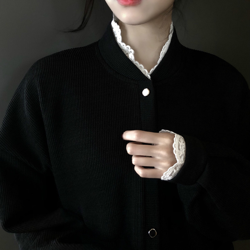 / 韓國復古風百搭外套女秋裝2018新款寬松顯瘦蕾絲拼接氣質短款上衣