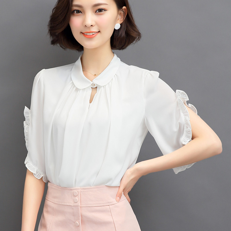 / 春裝2017新款女夏季女裝大碼雪紡衫短袖上衣女夏寬松喇叭袖娃娃領