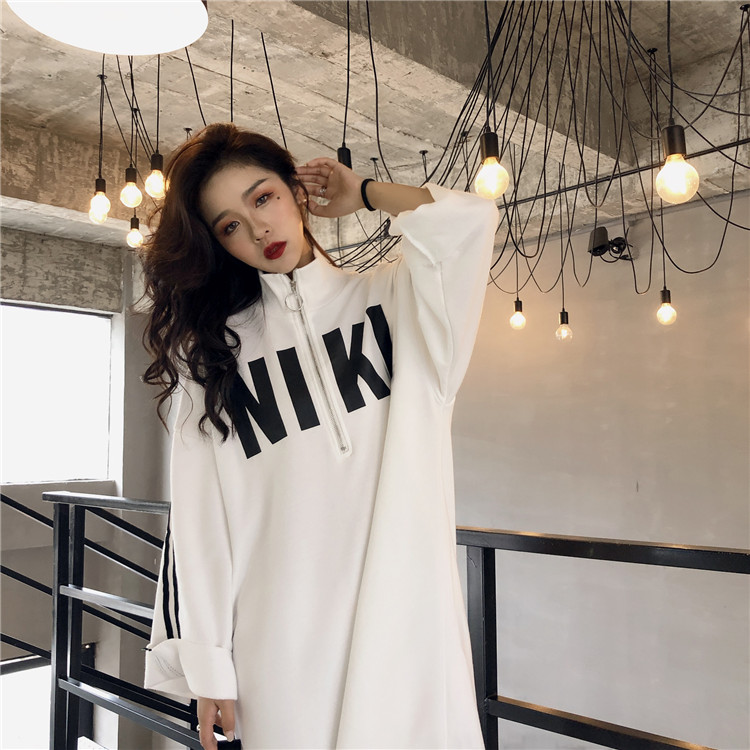 / 衛衣2018新款女長袖韓版寬松顯瘦oversize印花半高領慵懶長款裙子