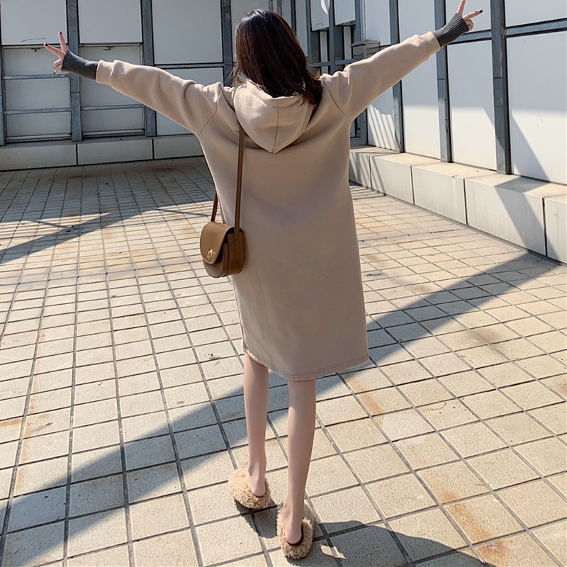 / 假兩件長款加絨衛衣2018新款女秋冬裝港風黑色連帽外套長袖上衣潮