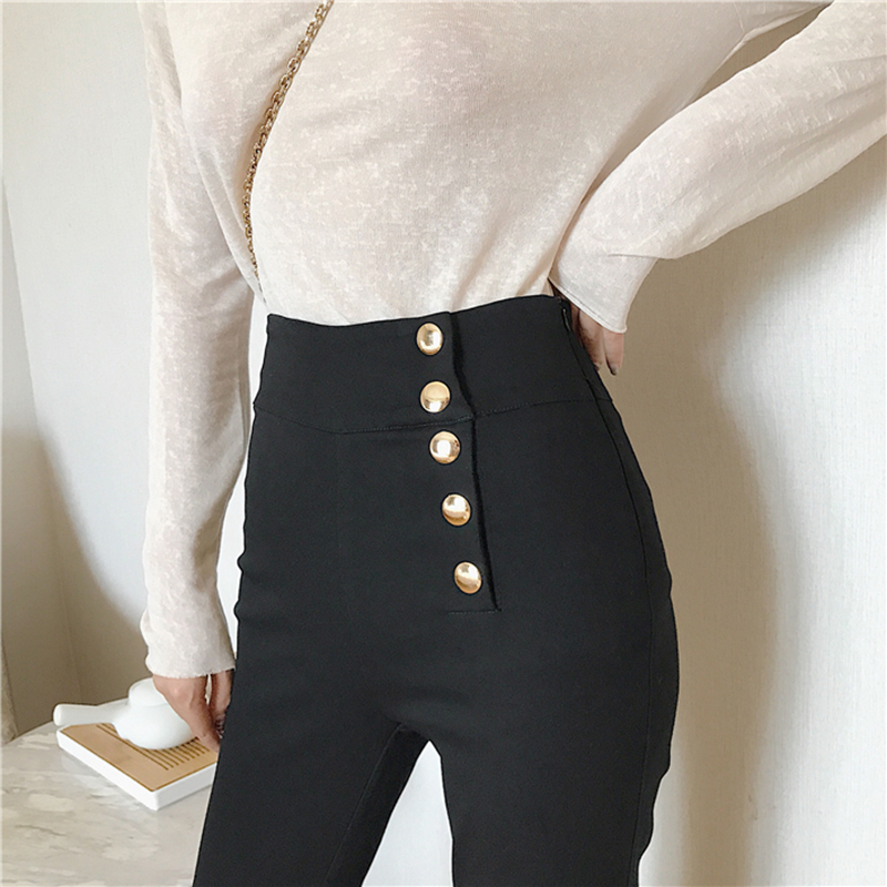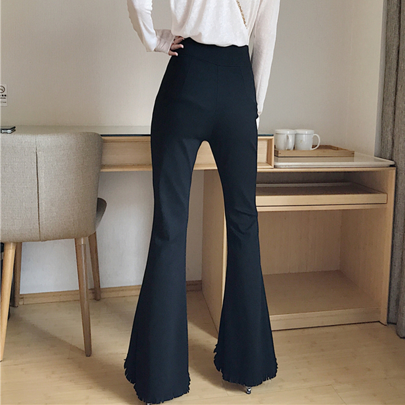 時尚休閑褲女秋裝女2018新款氣質顯瘦排扣高腰開叉流蘇喇叭長褲子