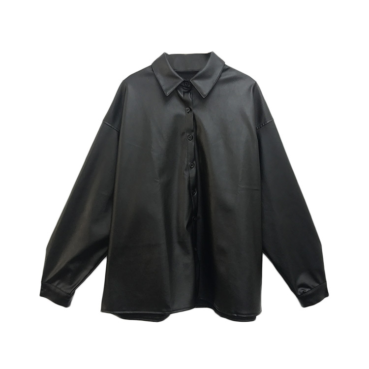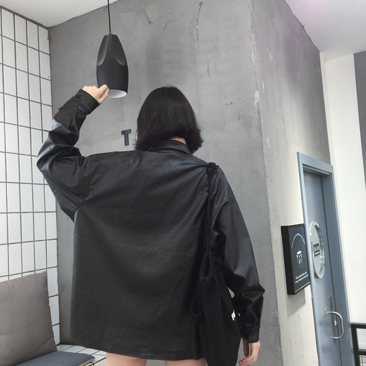 / 秋季新款復古港味oversize皮襯衫百搭上衣氣質時尚中長仿皮外套女