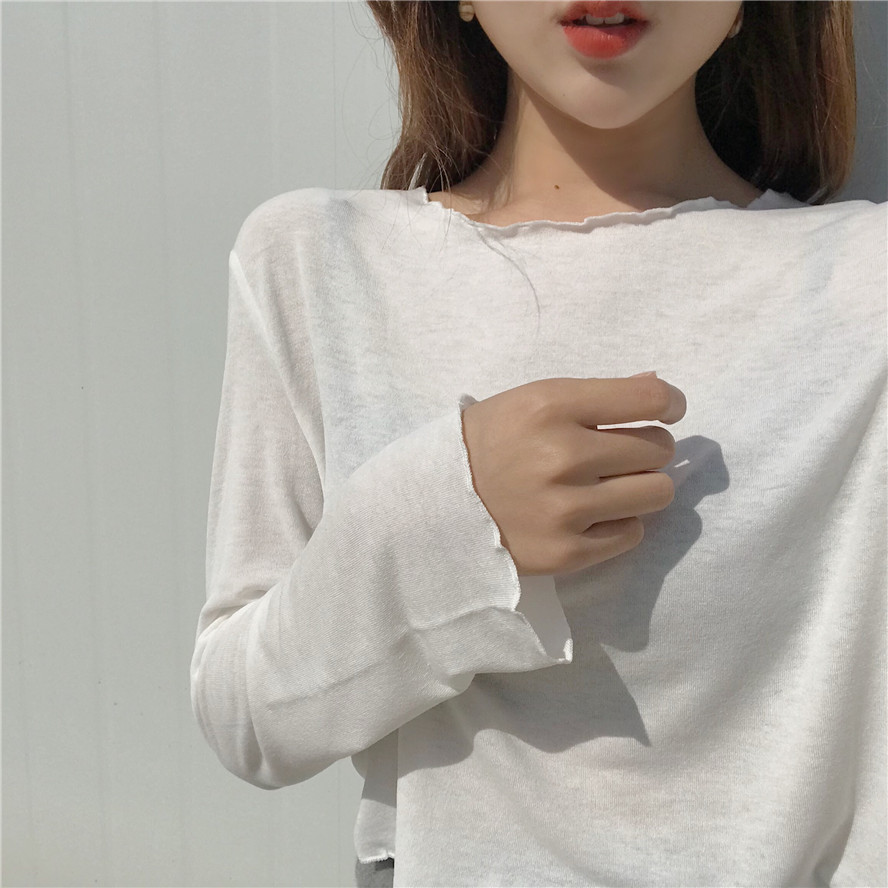 T恤女復古chic風舒適親膚百搭純色卷邊氣質圓領短款打底上衣潮
