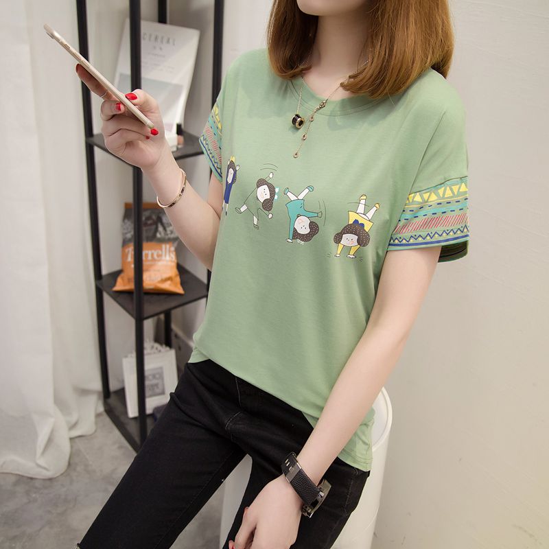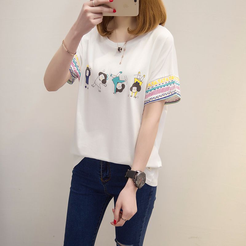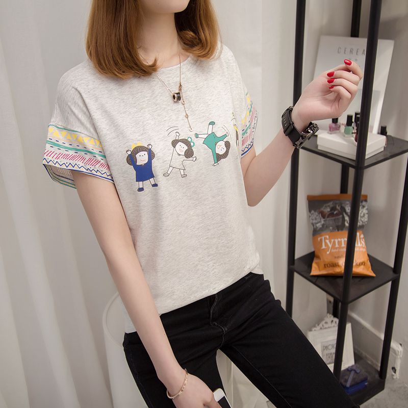 / 春裝韓版女裝寬松印花套頭寬松t恤女打底衫短袖上衣女夏新款