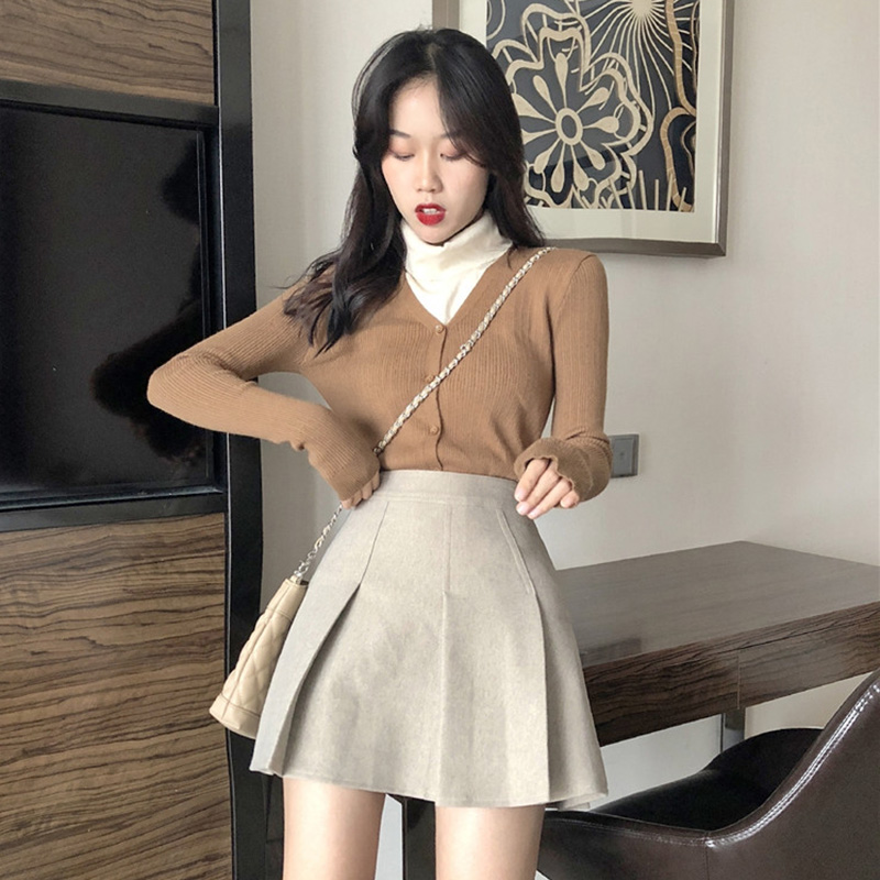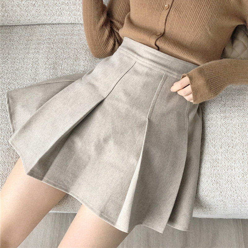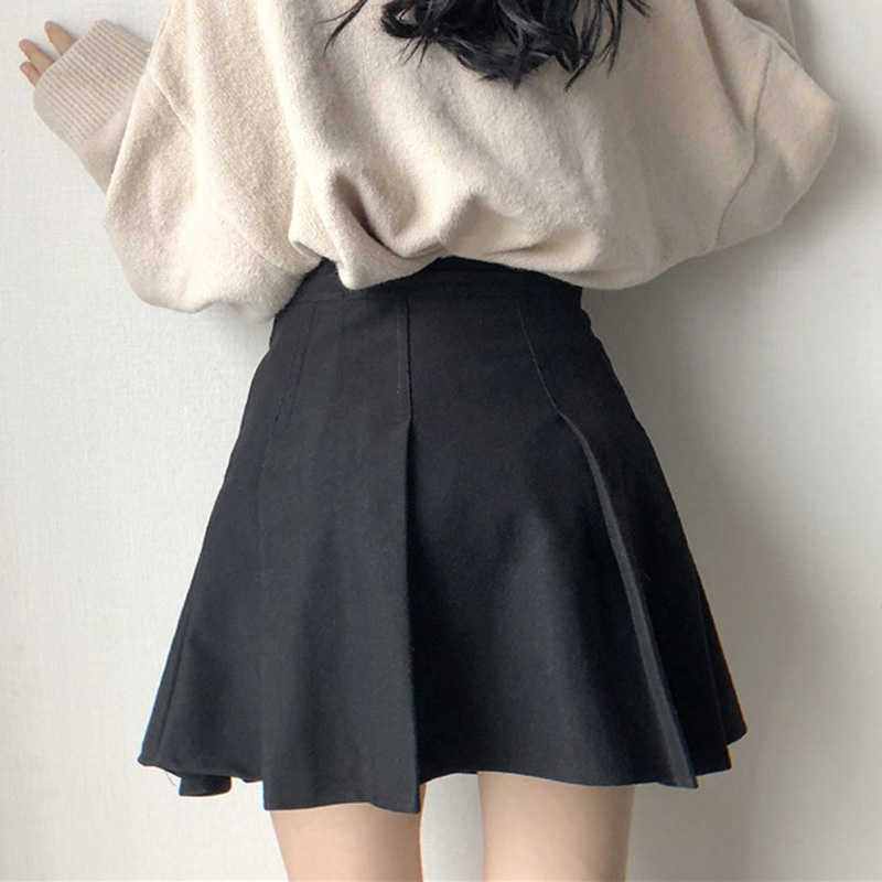/ 高腰顯瘦毛呢半身裙秋裝女2018新款黑色A字短裙學生休閑百褶裙子