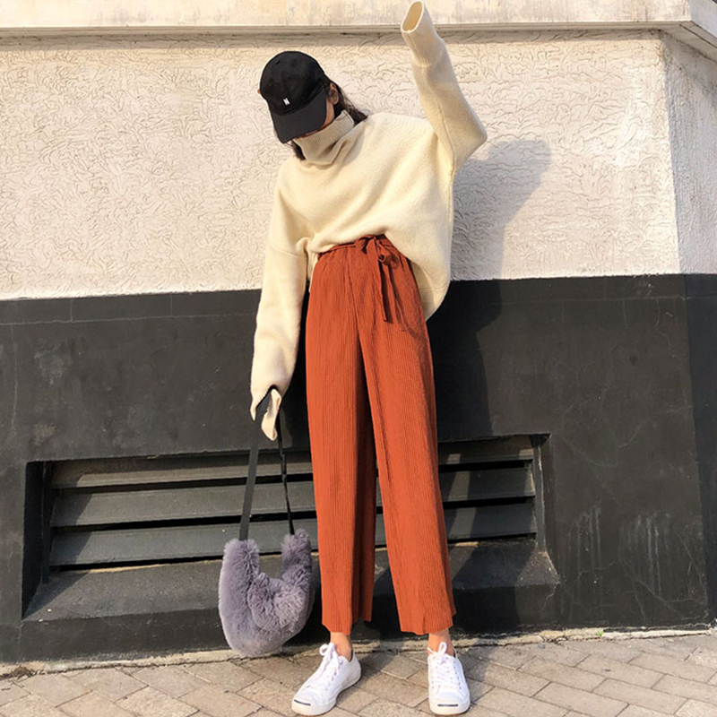 / 秋冬2018新款女裝韓版chic壓褶初戀褲子學生高腰闊腿褲休閑長褲潮