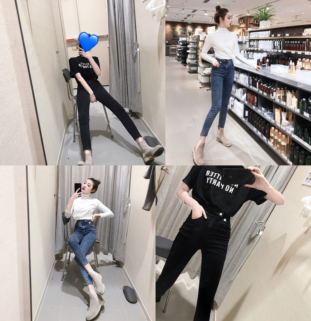 褲子女新款韓版秋冬復古高腰彈力牛仔鉛筆褲子緊身小腳褲百搭長褲