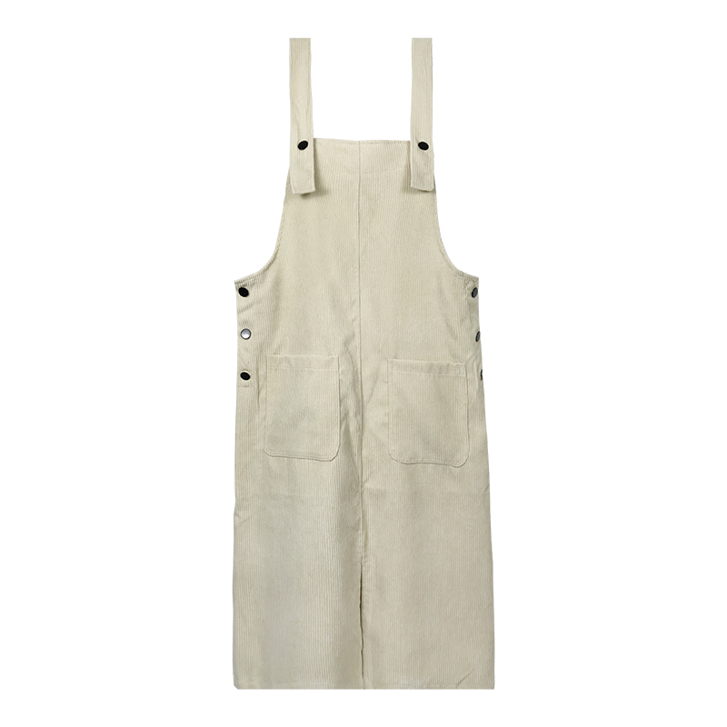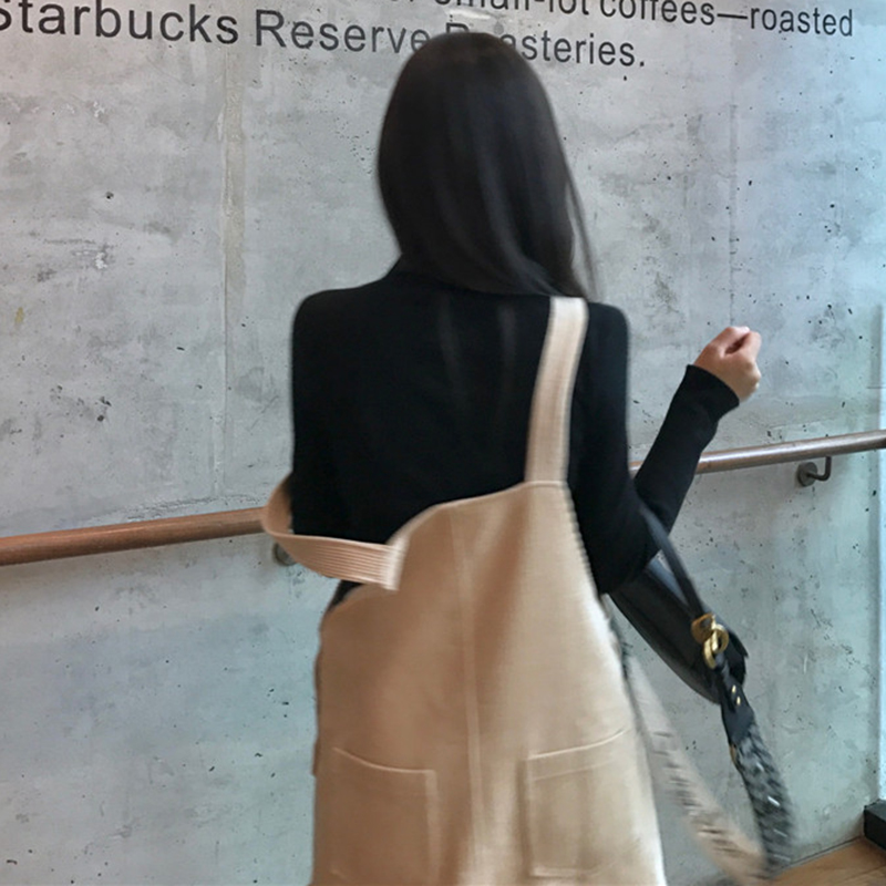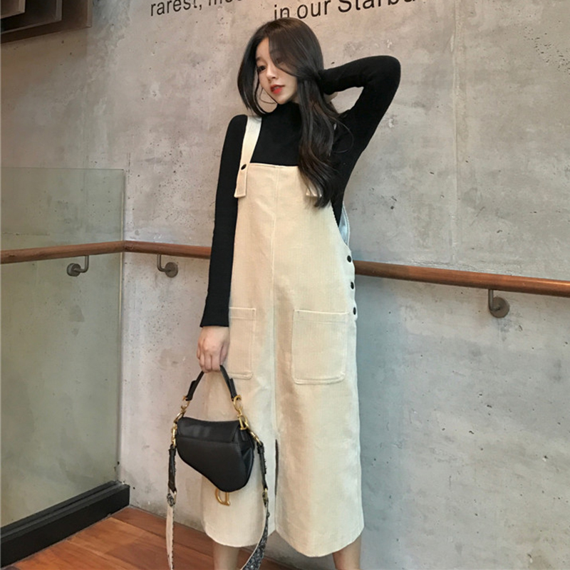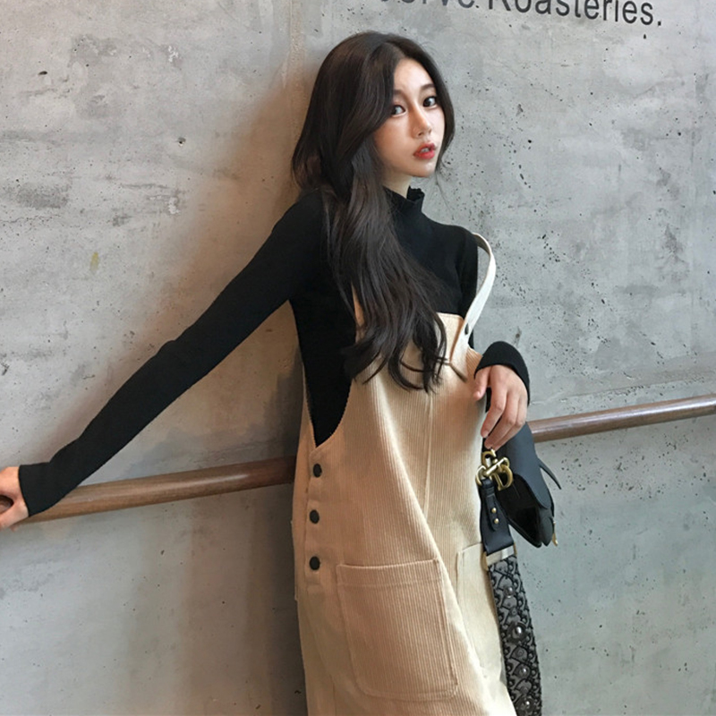 / 秋冬2018新款女裝韓版chic寬松燈芯絨連衣裙純色中長款過膝背帶裙
