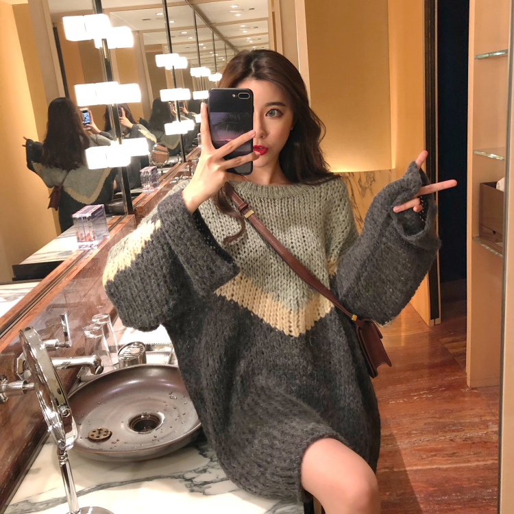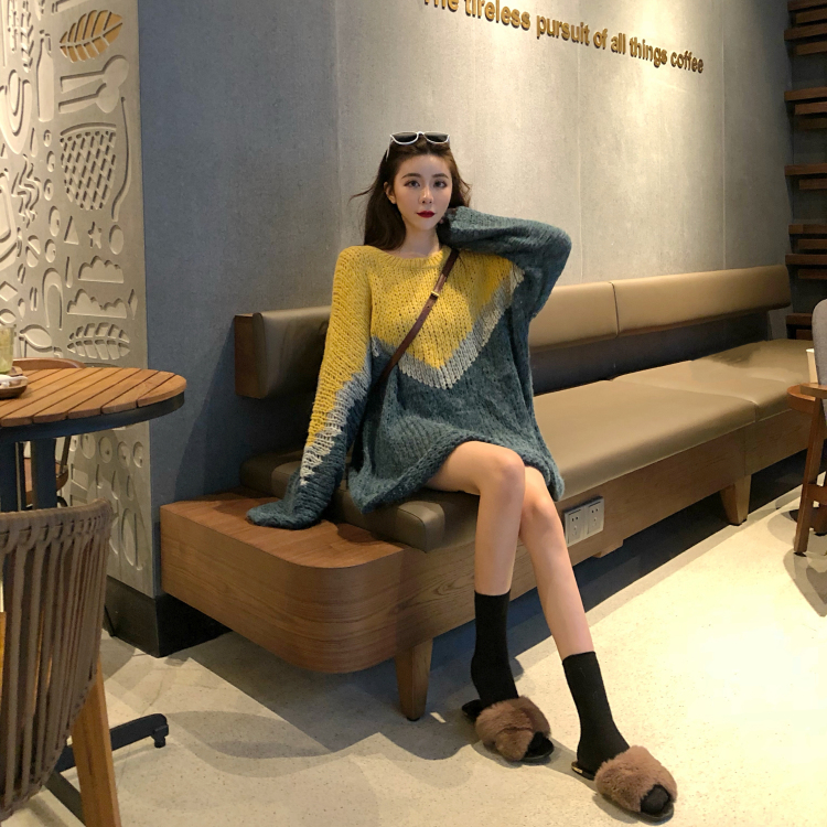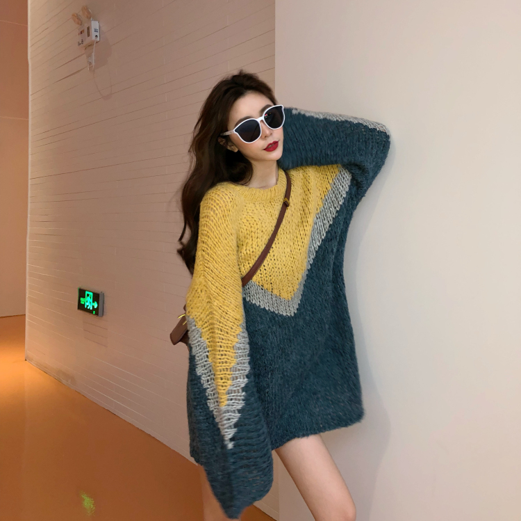 這一件拼色的毛衣就剛好具備了所有的這些條件。