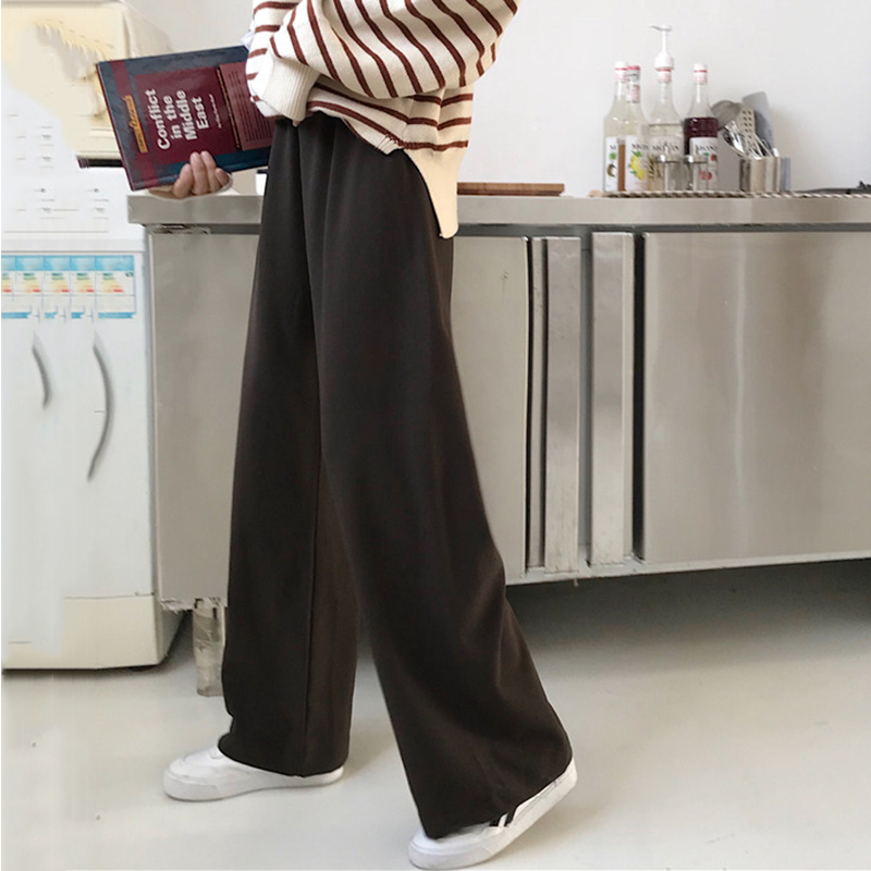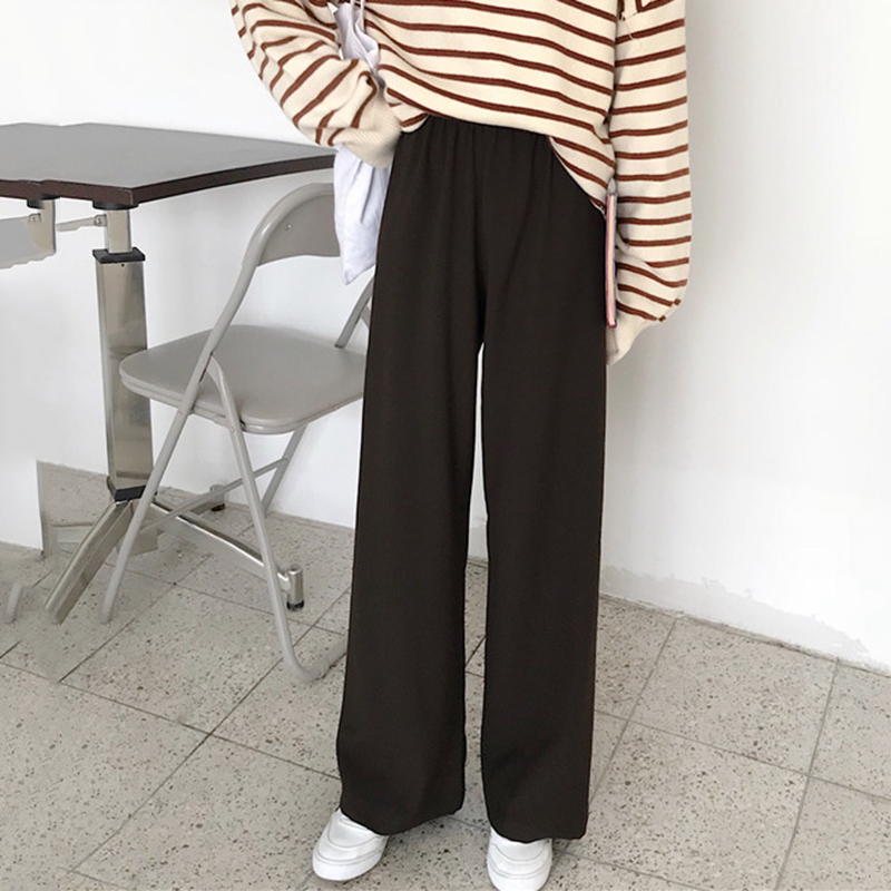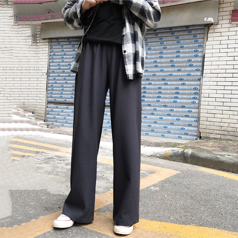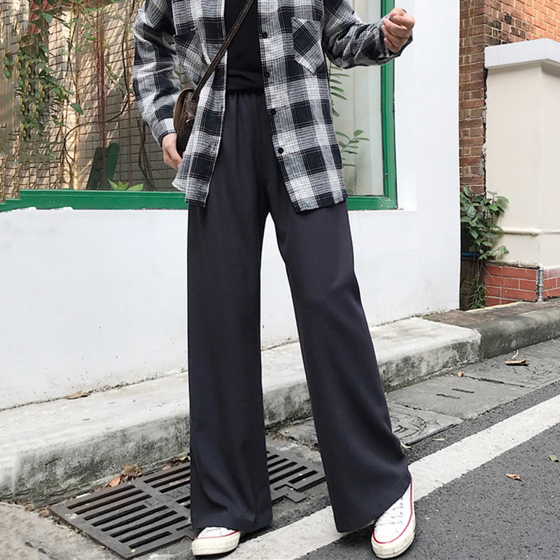長褲子女秋裝2018新款韓版顯瘦純色松緊高腰休閑褲學生寬松闊腿褲