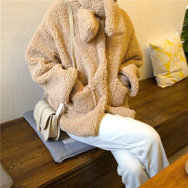 / 冬季新款韓版女裝百搭chic加厚保暖羊羔毛長袖短外套女絨衫配圍巾