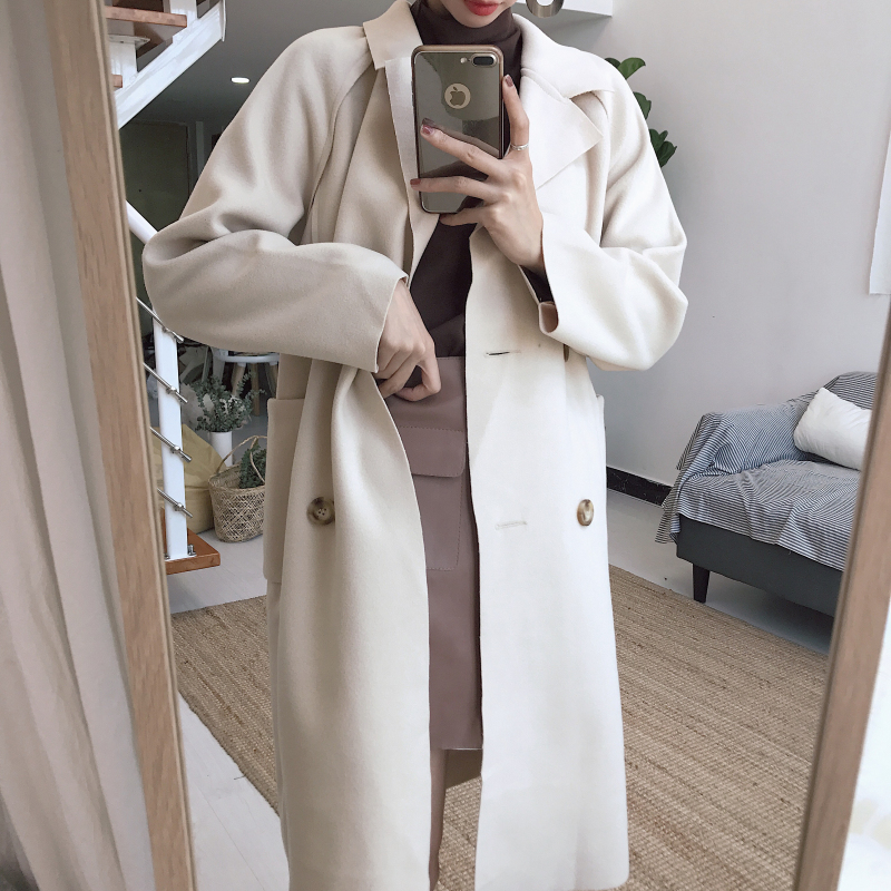 / 秋冬韓版百搭款氣質長袖毛呢外套女中長款過膝妮子大衣(送腰帶)