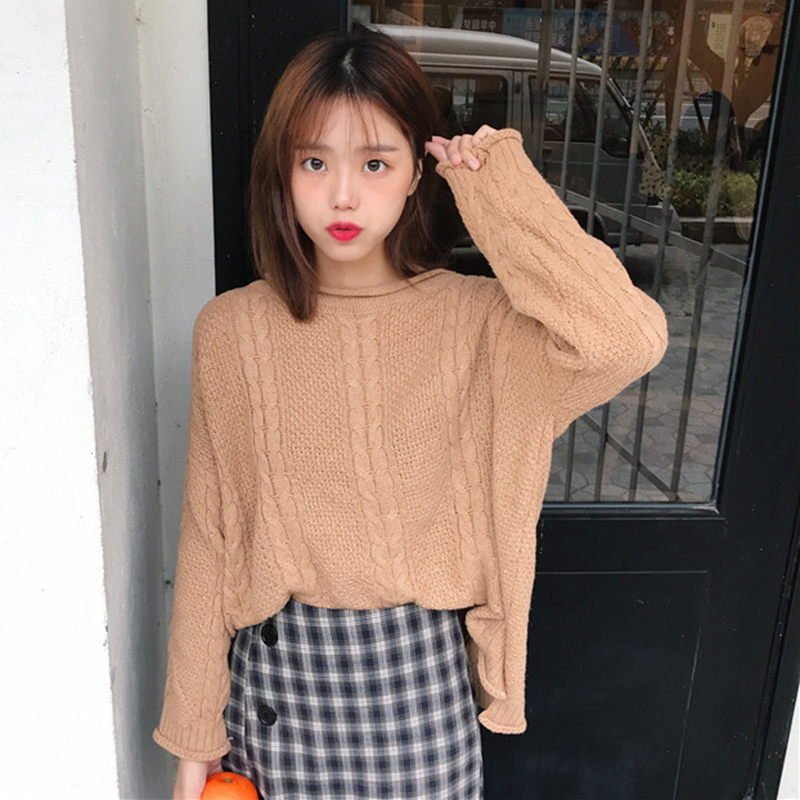 / 復古麻花針織衫秋冬女裝新款寬松長袖慵懶風毛衣學生圓領休閑上衣
