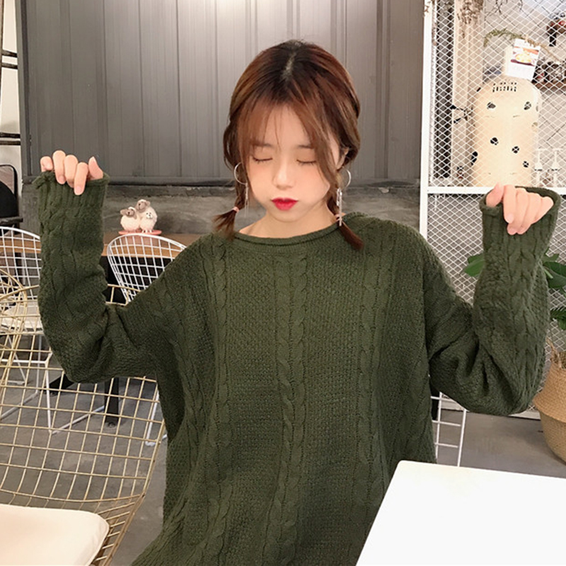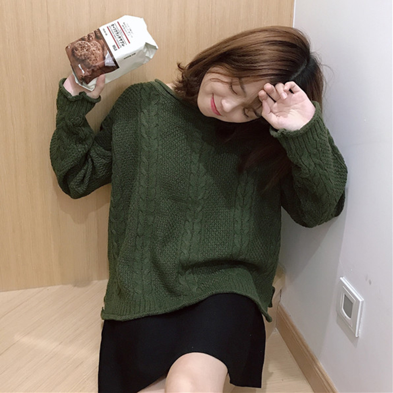 復古麻花針織衫秋冬女裝新款寬松長袖慵懶風毛衣學生圓領休閑上衣