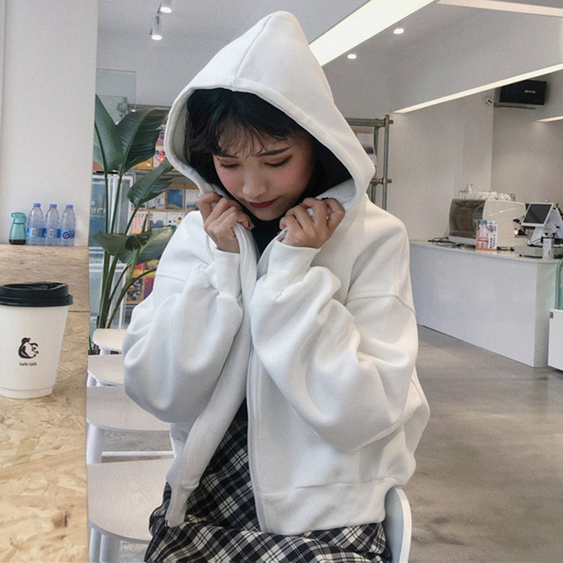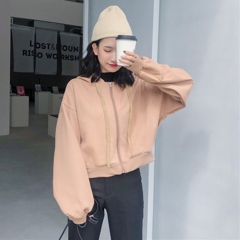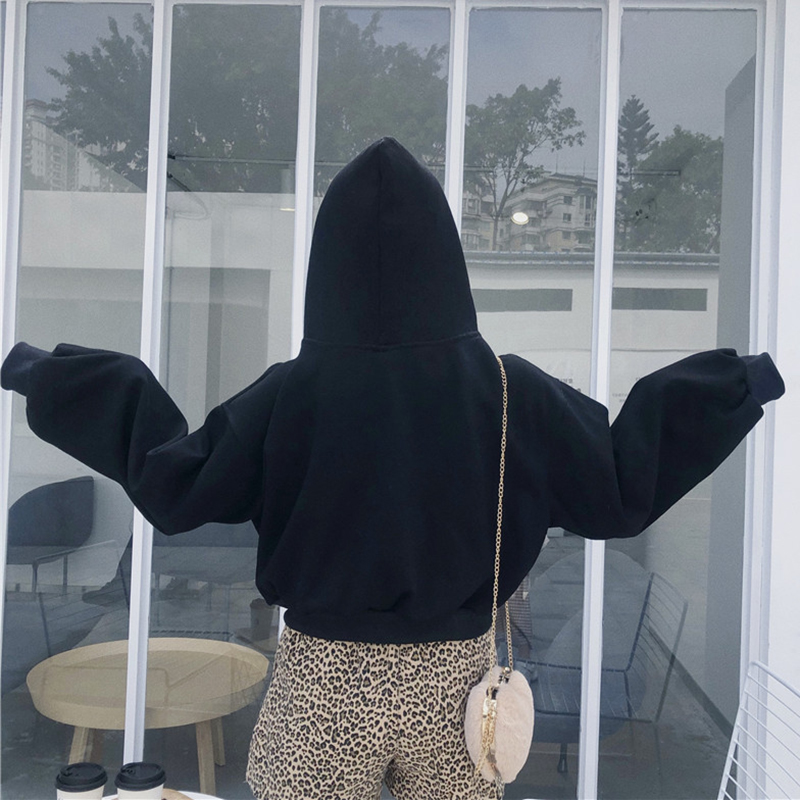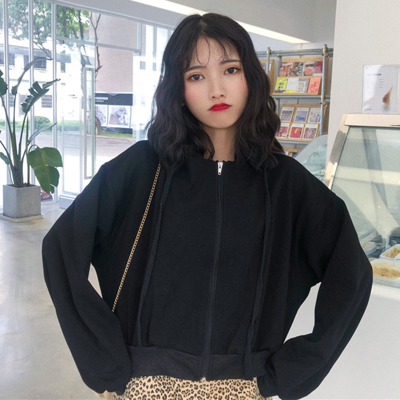/ 復古黑色連帽深秋短外套女冬裝2018新款港風學生開衫寬松長袖上衣