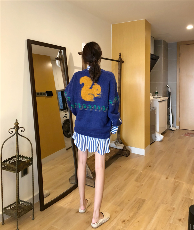 / 2018秋季新款女裝百搭bf風條紋襯衣早秋套頭毛衣韓版港風時尚套裝
