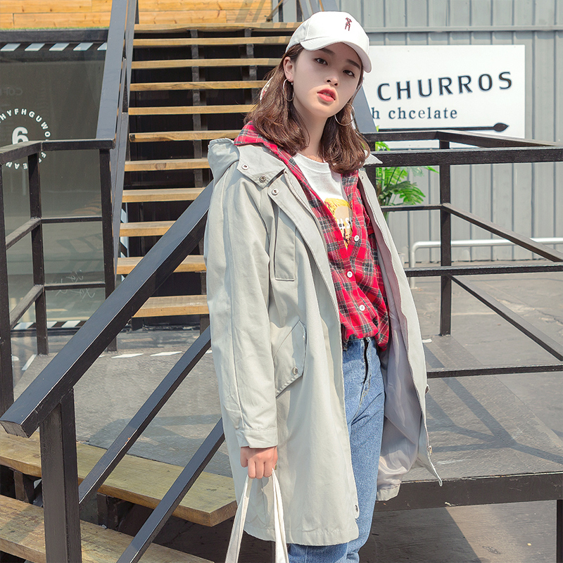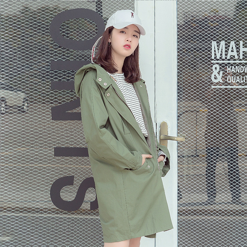 春裝新款韓版女裝中長款連帽中長款風衣寬松學生外套學院風潮