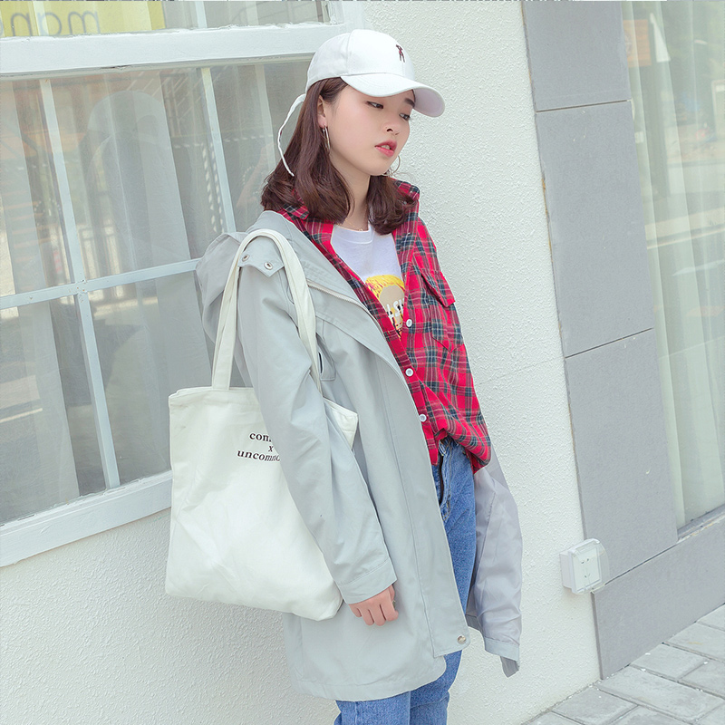 / 春裝新款韓版女裝中長款連帽中長款風衣寬松學生外套學院風潮