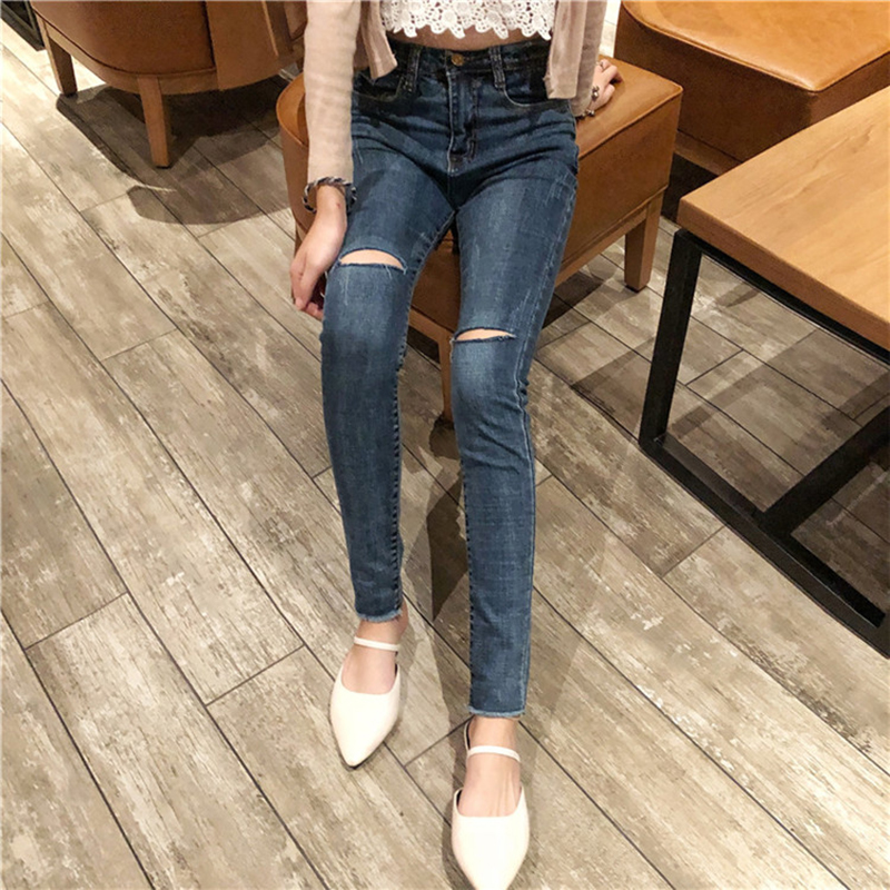 / 毛邊牛仔褲子女秋裝新款韓版修身顯瘦小腳鉛筆褲高腰打底緊身褲潮