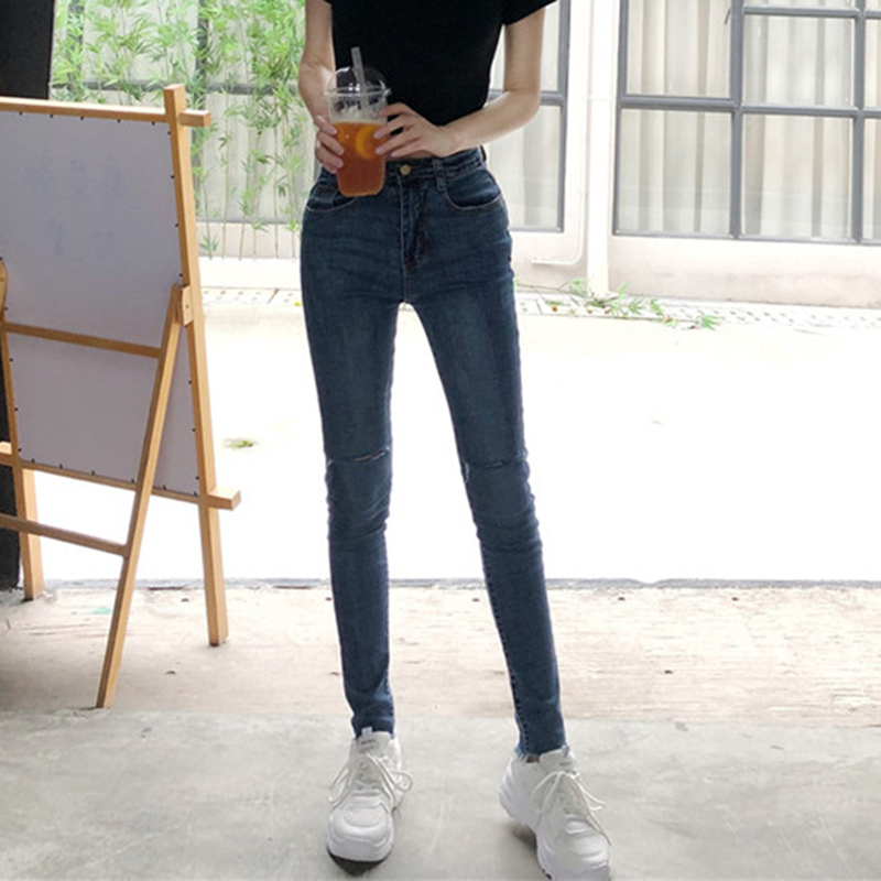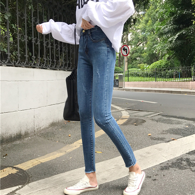 毛邊牛仔褲子女秋裝新款韓版修身顯瘦小腳鉛筆褲高腰打底緊身褲潮