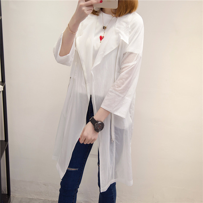/ 夏裝新款女長款透視防曬衣寬松白色風衣女春季韓版外套百搭潮