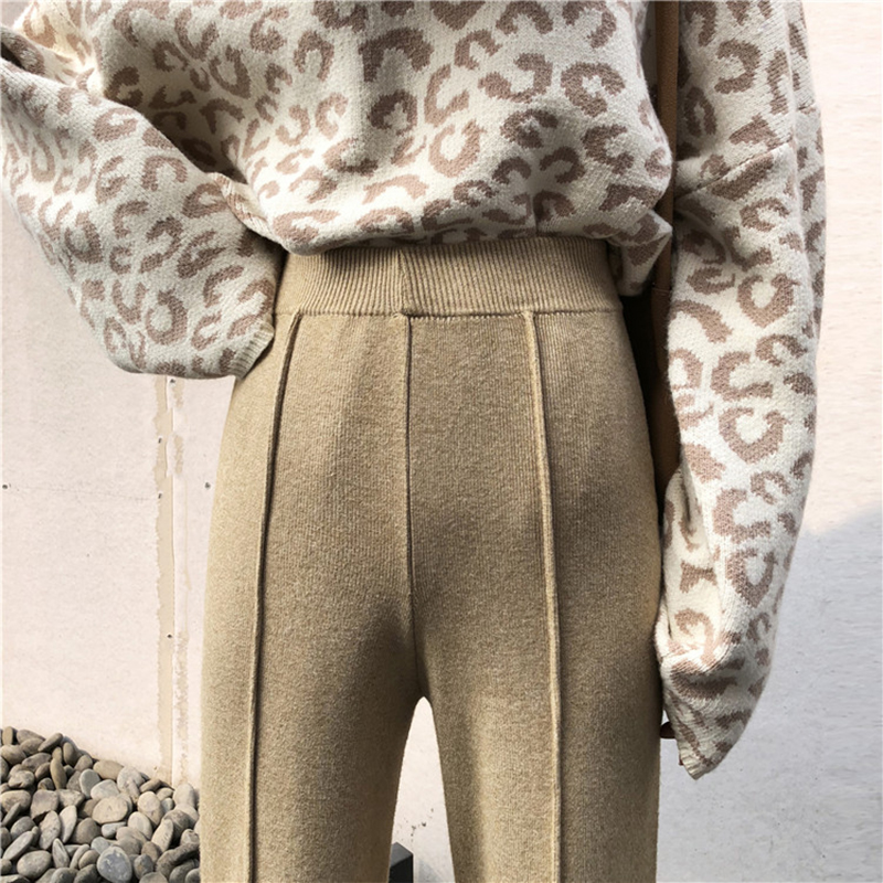 / 2018秋冬女裝新款韓版開叉針織闊腿褲寬松顯瘦高腰休閑黑色長褲子