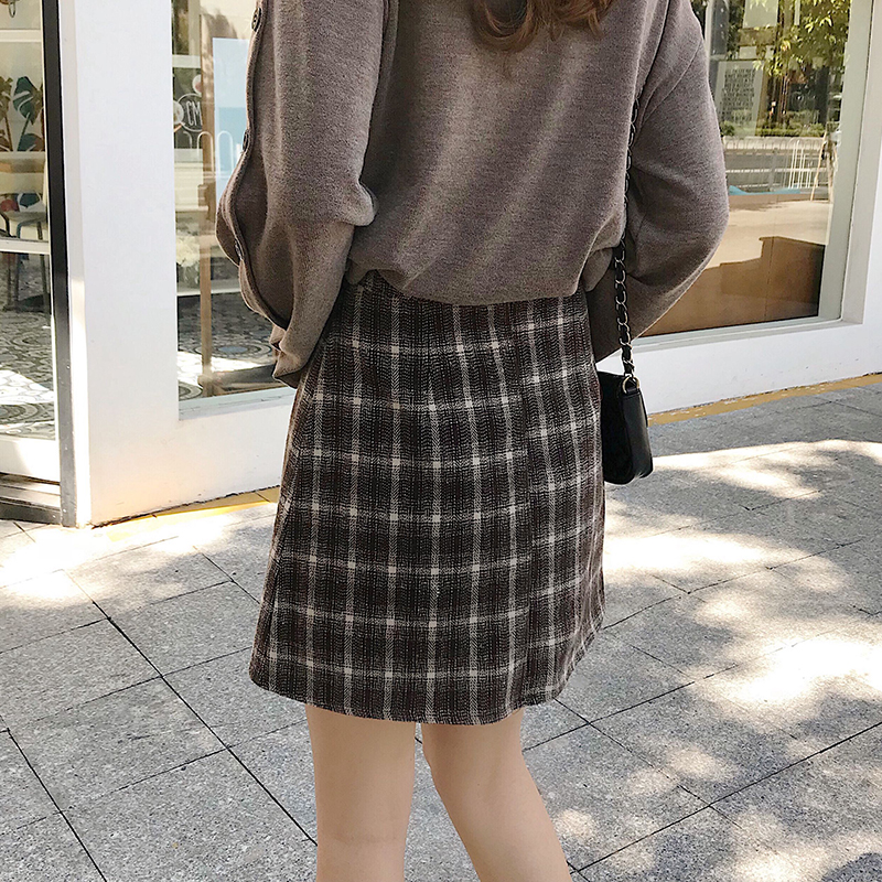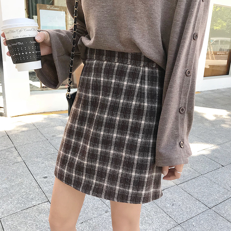 港味chic復古格子毛呢半身裙女秋冬裝2018新款高腰顯瘦A字包臀裙