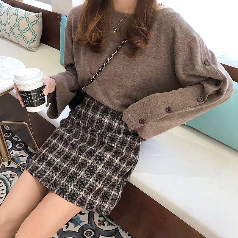 / 港味chic復古格子毛呢半身裙女秋冬裝2018新款高腰顯瘦A字包臀裙
