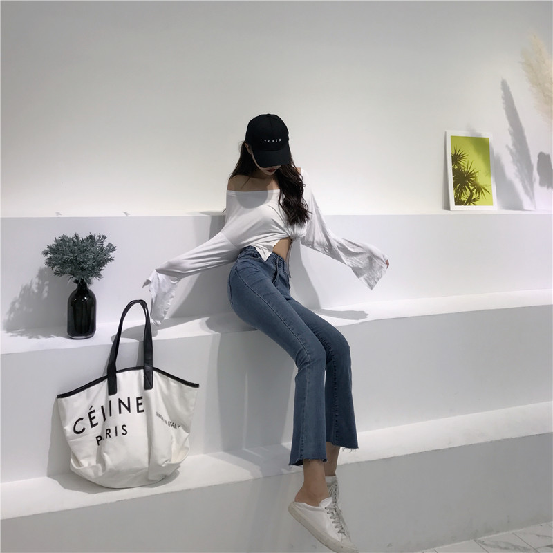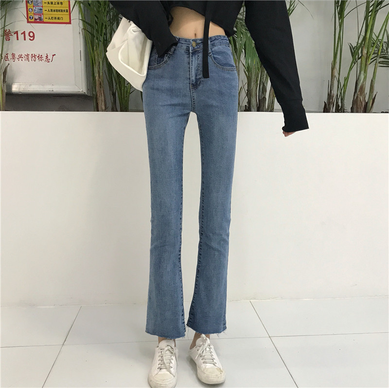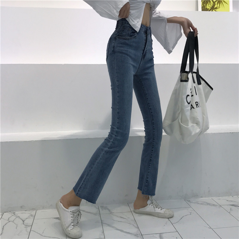/ 韓版時尚百搭復古風褲子秋裝女2018新款高腰修身顯瘦微喇叭牛仔褲