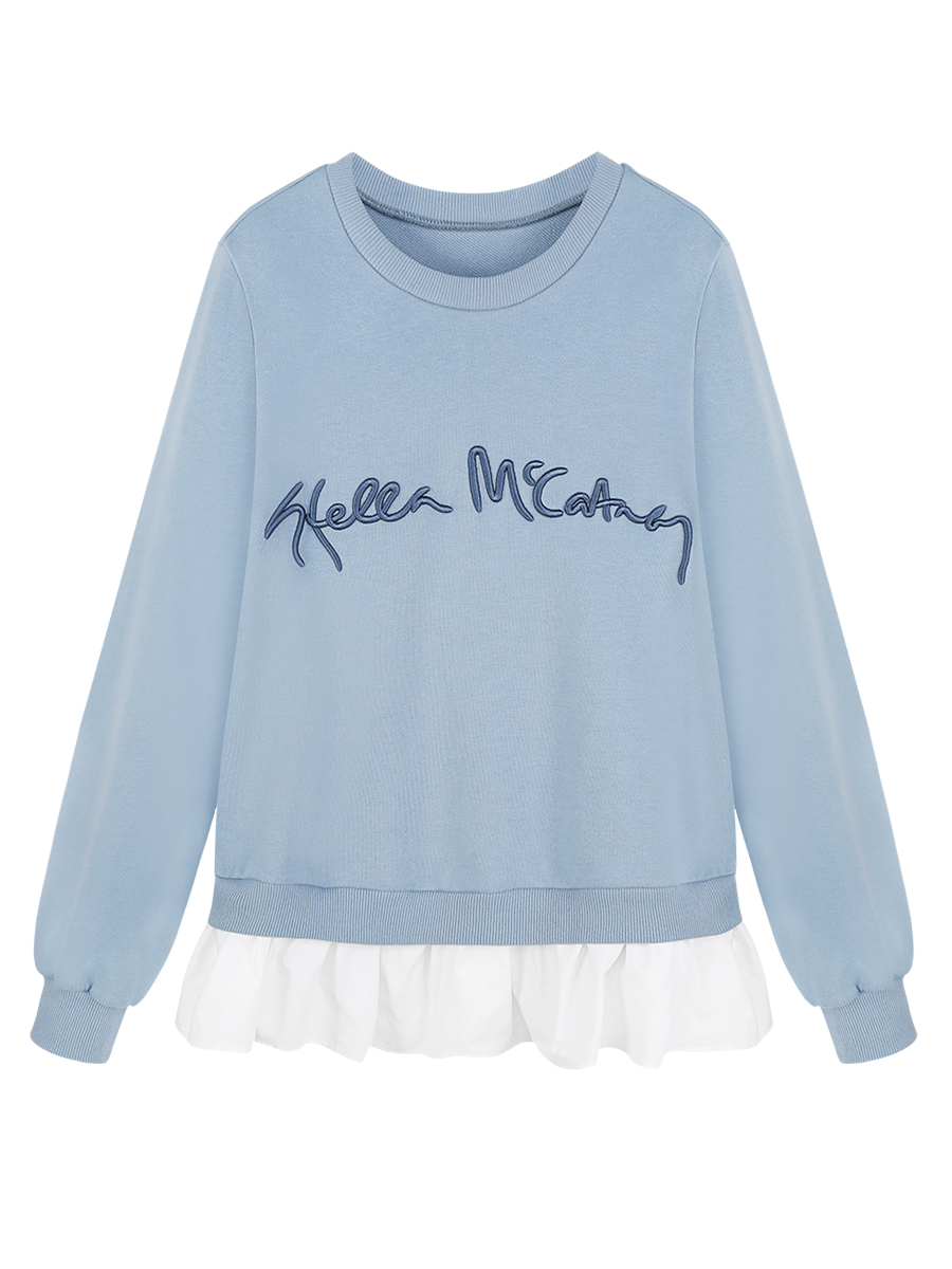 MG小象假兩件拼接衛衣女寬松秋冬2018新款字母刺繡休閑套頭上衣潮
