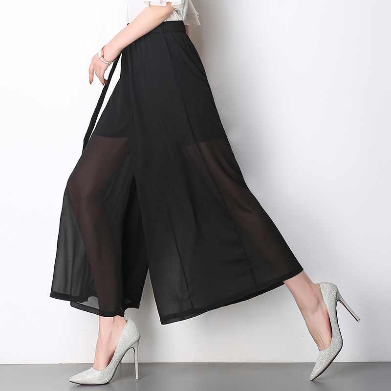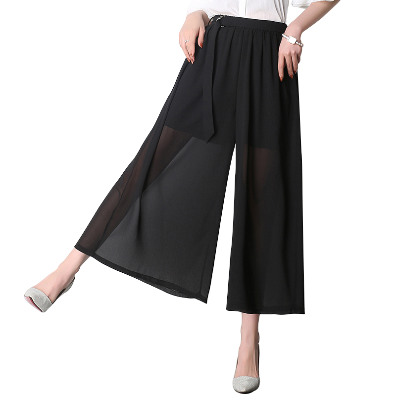 / 雪紡闊腿褲女九分褲高腰韓版學生顯瘦夏季褲子春裝新款寬腿褲