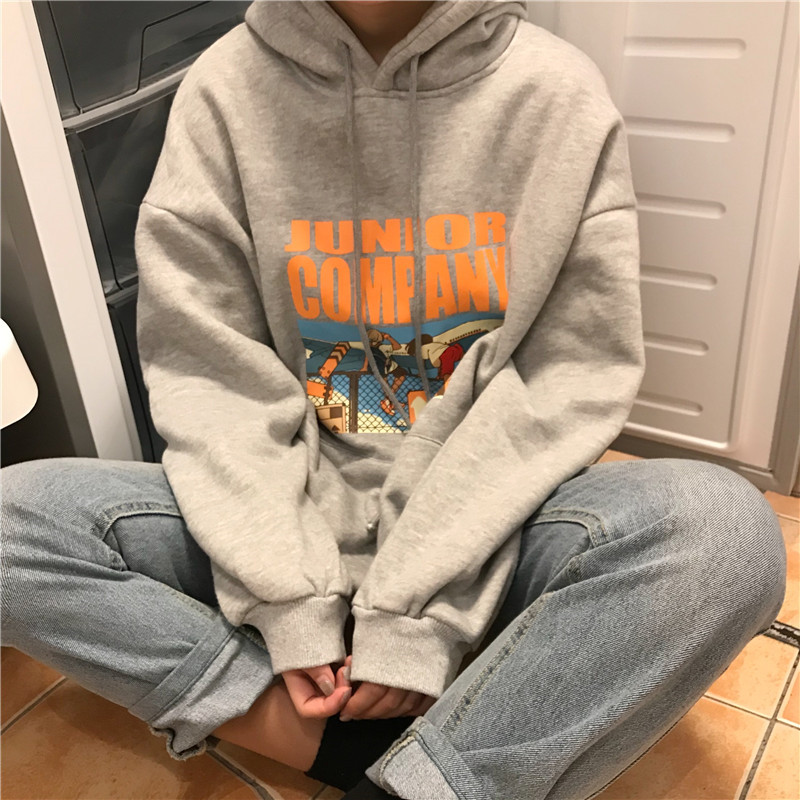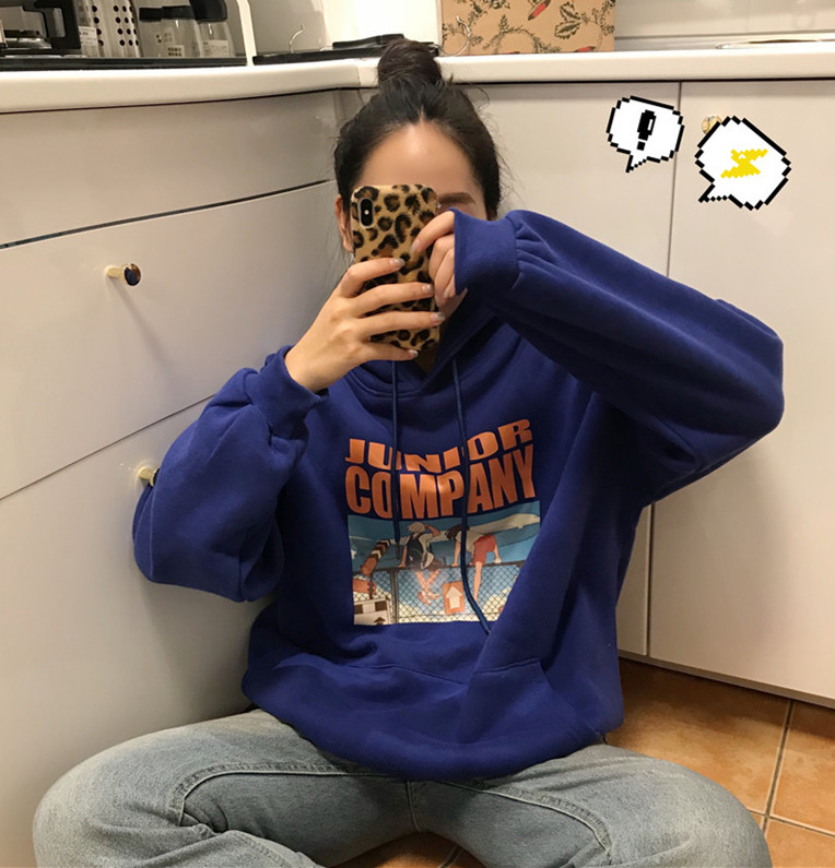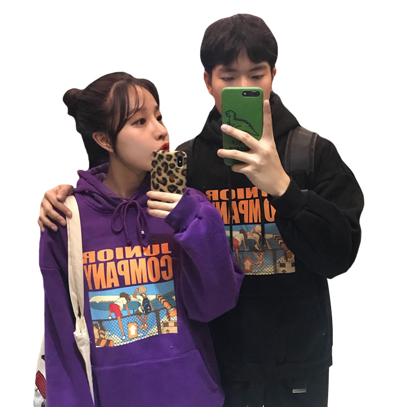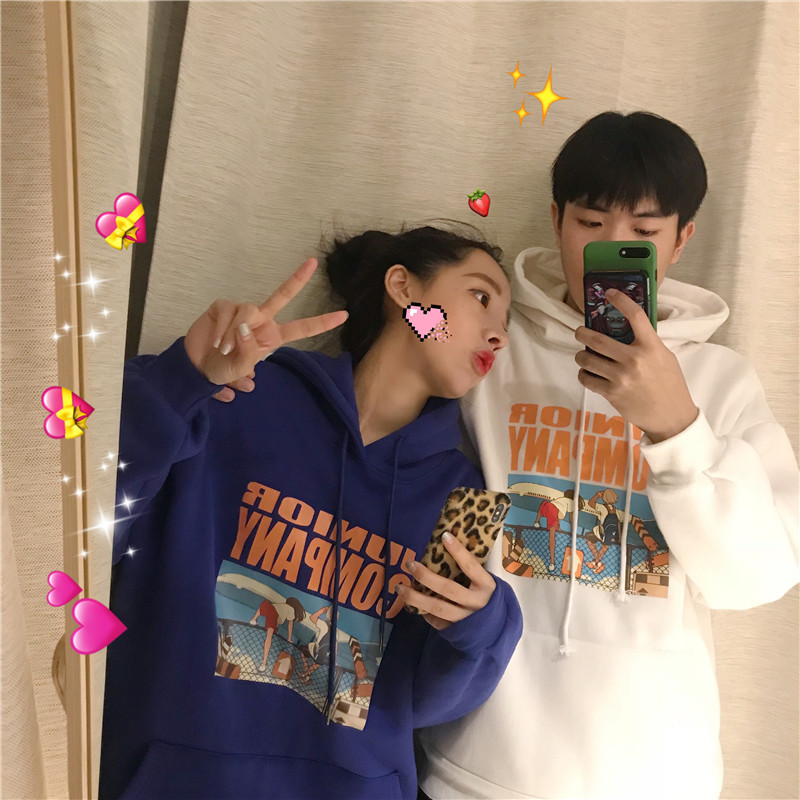 / 可可里小姐~冬季新款韓版寬松百搭加絨厚款連帽情侶衛衣外套上衣