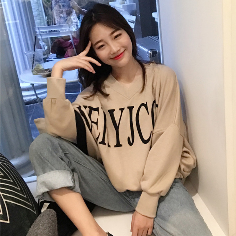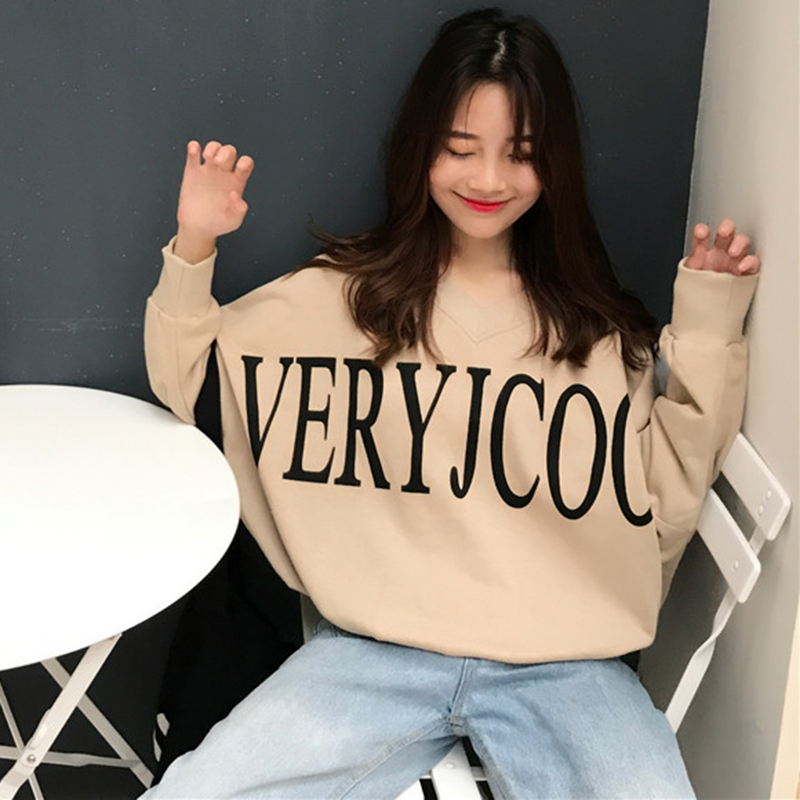秋冬女裝2018新款字母印花寬松衛衣慵懶長袖上衣學生時尚休閑外套