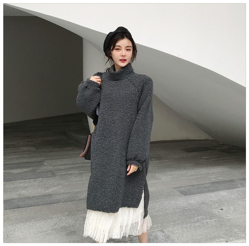 新款秋冬網紗背心裙時尚套裝毛毛高領側面開叉連衣裙外套女兩件套