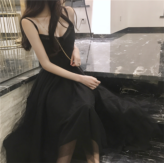 秋裝2018新款女連衣裙性感露背沙灘裙氣質海邊閃亮顯瘦吊帶禮服裙