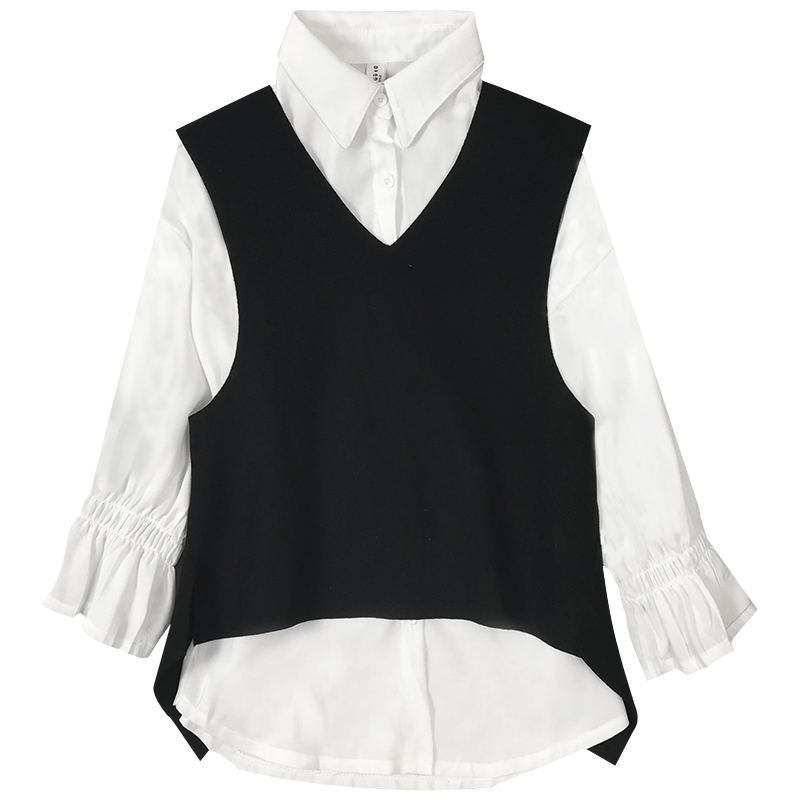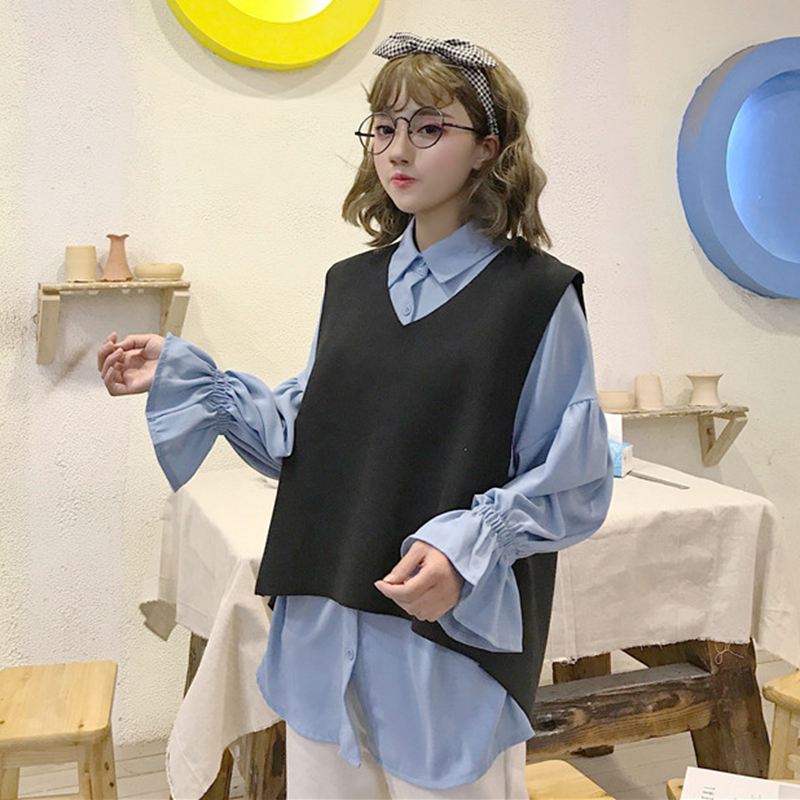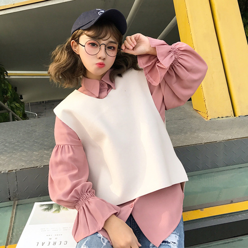 / 秋季女2018新款學院風 襯衫加背心襯衣配馬甲學生兩件套冷系女裝