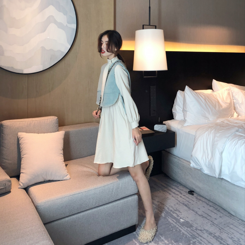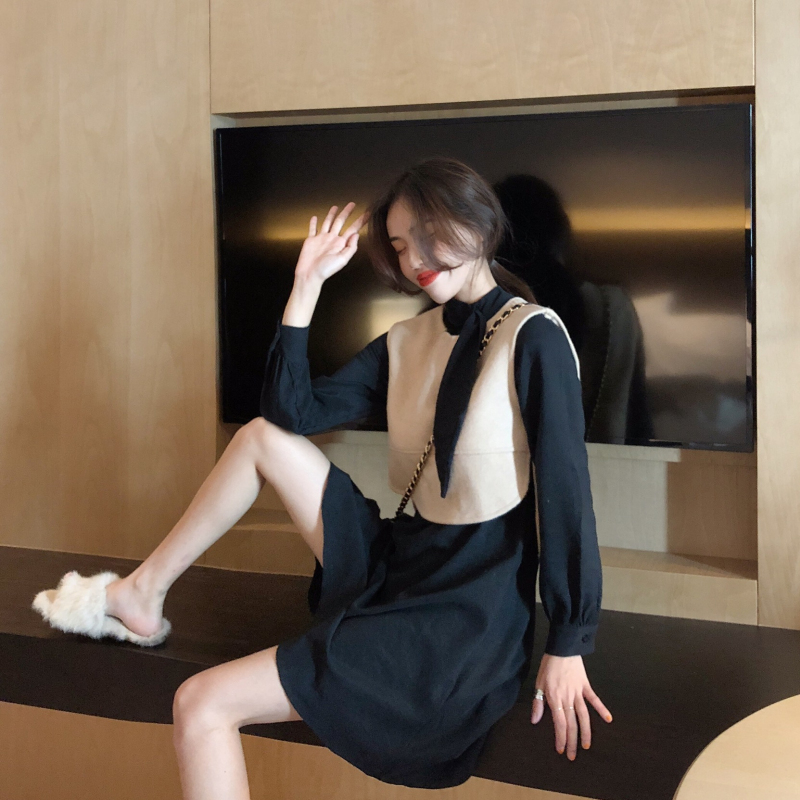 / 2018秋冬新款時尚呢子馬甲高腰中長款連衣裙網紅套裝chic兩件套女