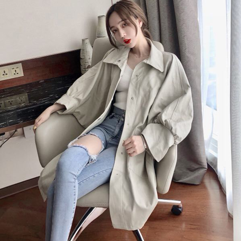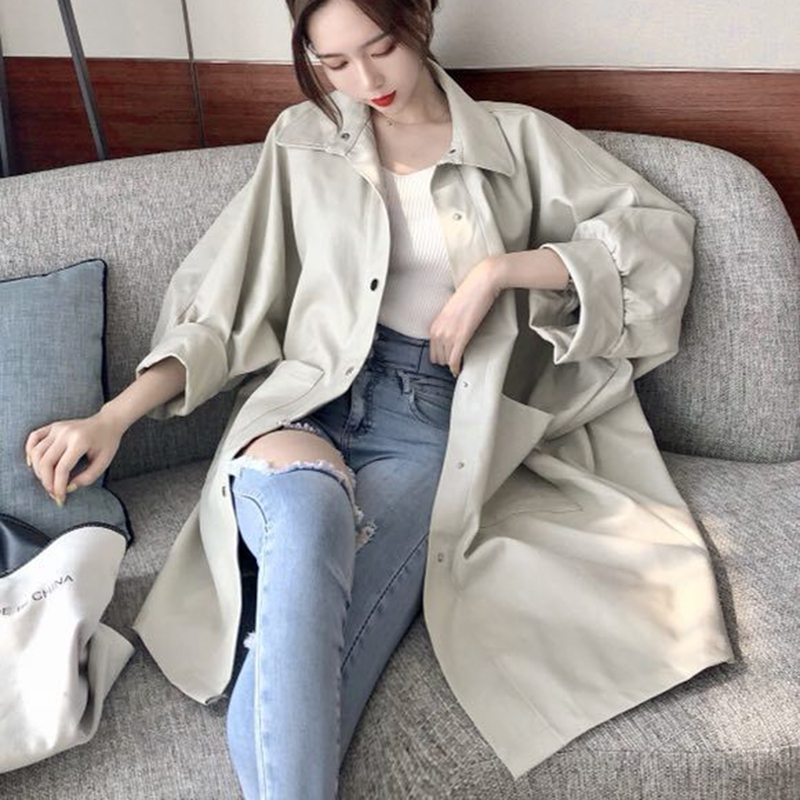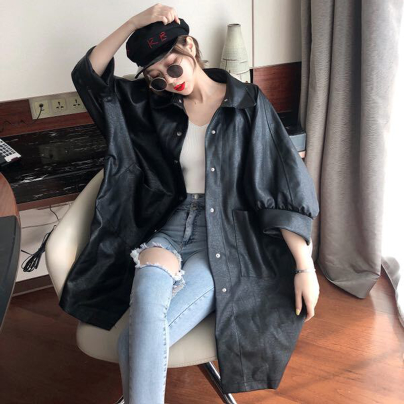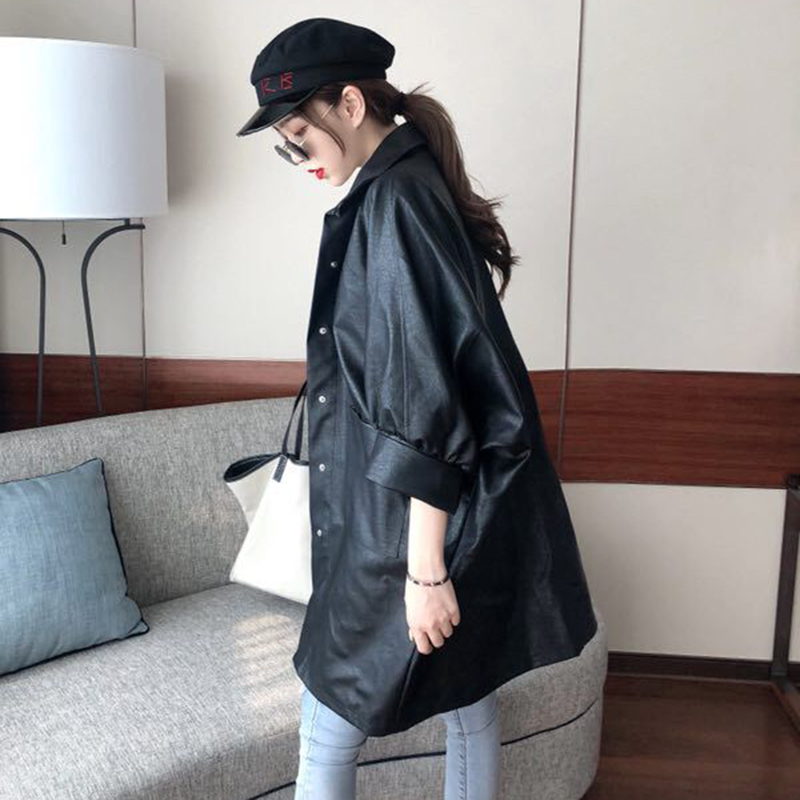 皮衣外套女秋冬裝2018新款時尚寬松翻領風衣學生帥氣中長款夾克潮