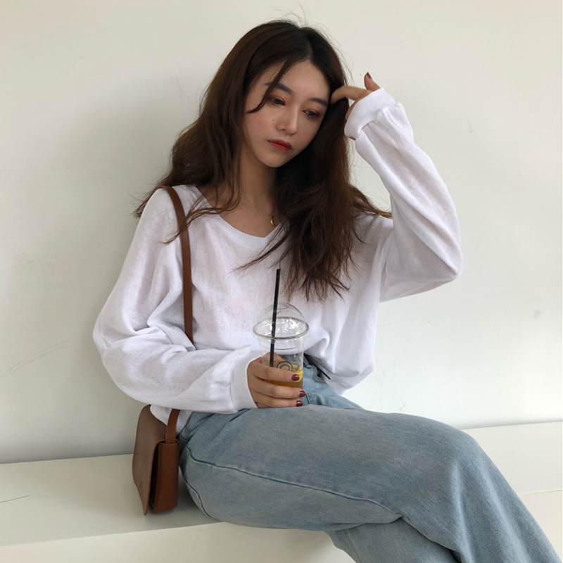 白T恤女秋裝2018新款韓版時尚寬松長袖體恤學生港味休閑簡約上衣