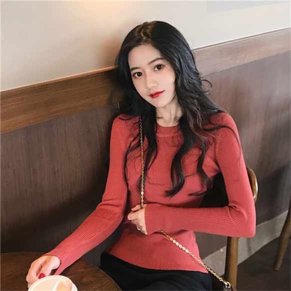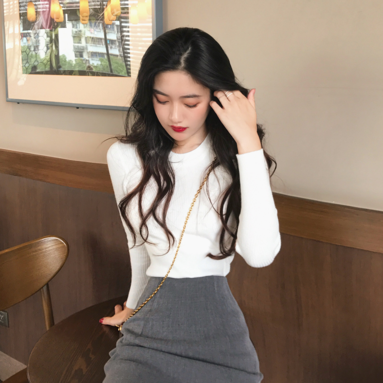 chic早秋毛衣慵懶風針織衫韓版馬卡龍顯白色系百搭打底針織上衣潮