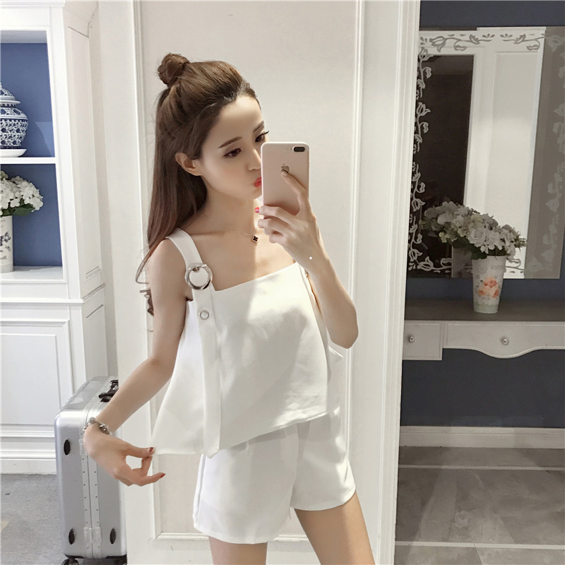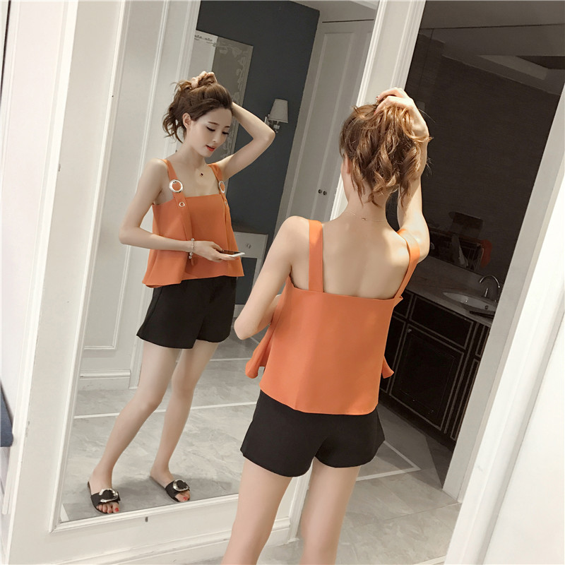 / 夏季新款女裝韓版小香風吊帶背心兩件套休閑高腰闊腿短褲套裝