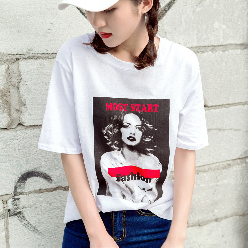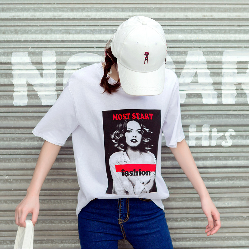 個性印花T恤款,夢露頭像印花上身灰常時髦