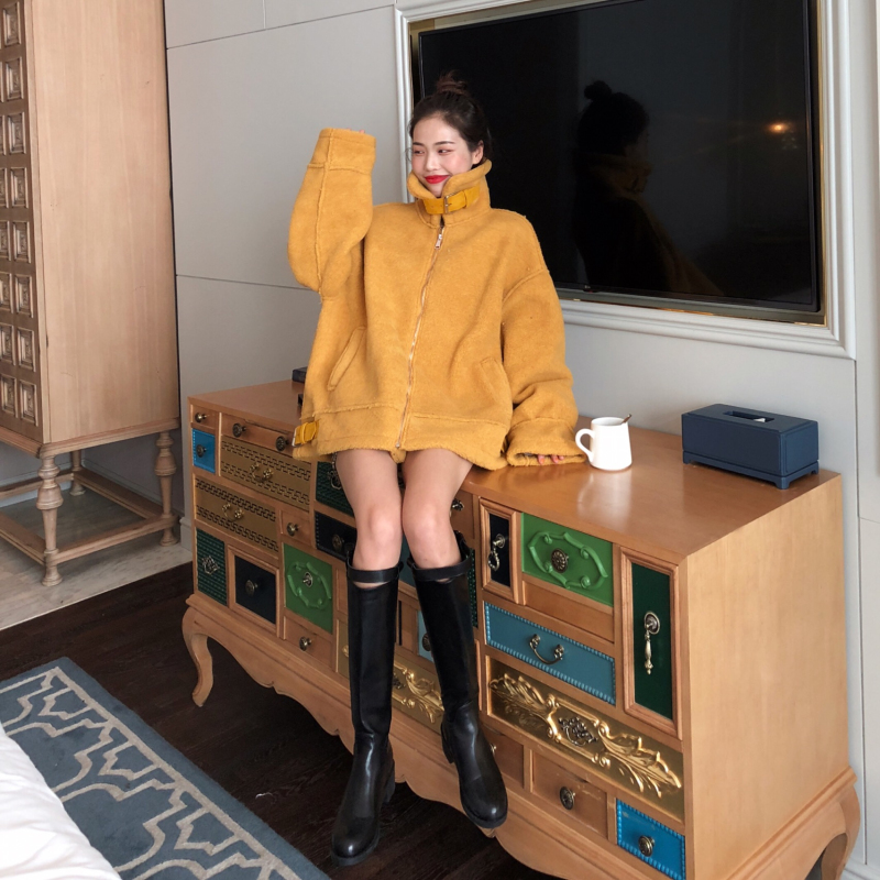 外套女韓版秋冬新款chic復古百搭寬松加厚長袖大翻領休閑呢子大衣