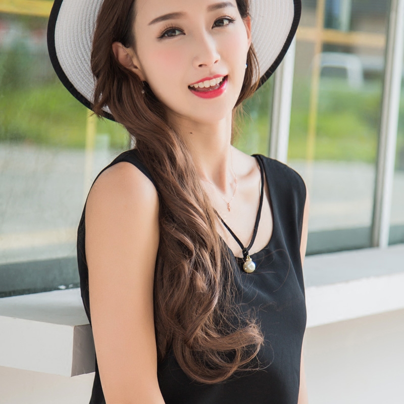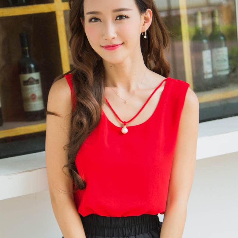 / 秋裝新款打底雪紡背心女吊帶雙層鑲珍珠上衣百搭顯瘦大碼潮