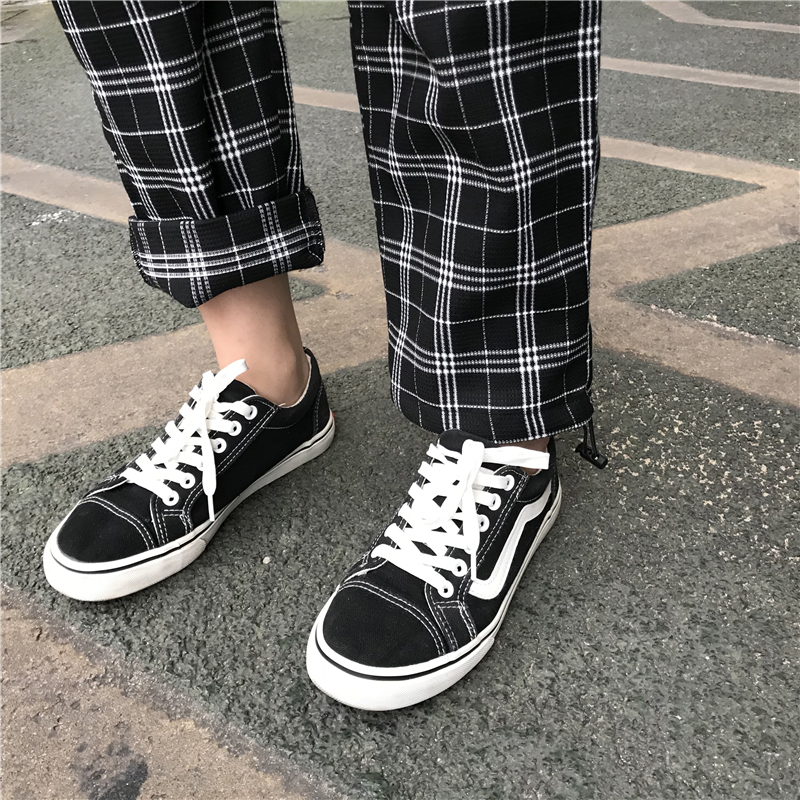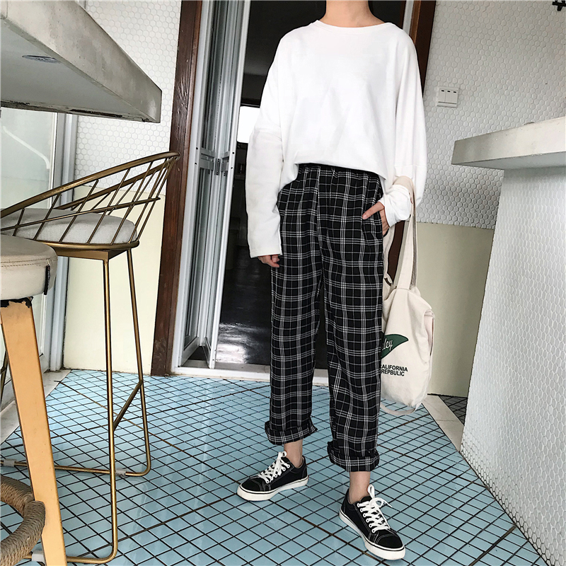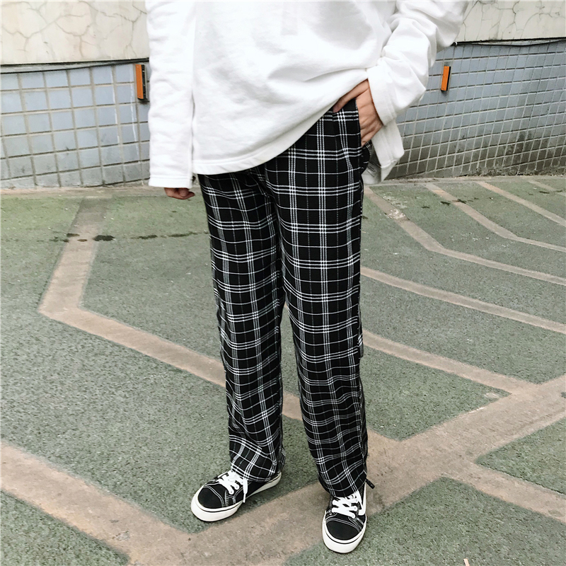 / 秋裝女2018新款韓版學生帥氣格子闊腿褲休閑直筒褲時尚高腰長褲子