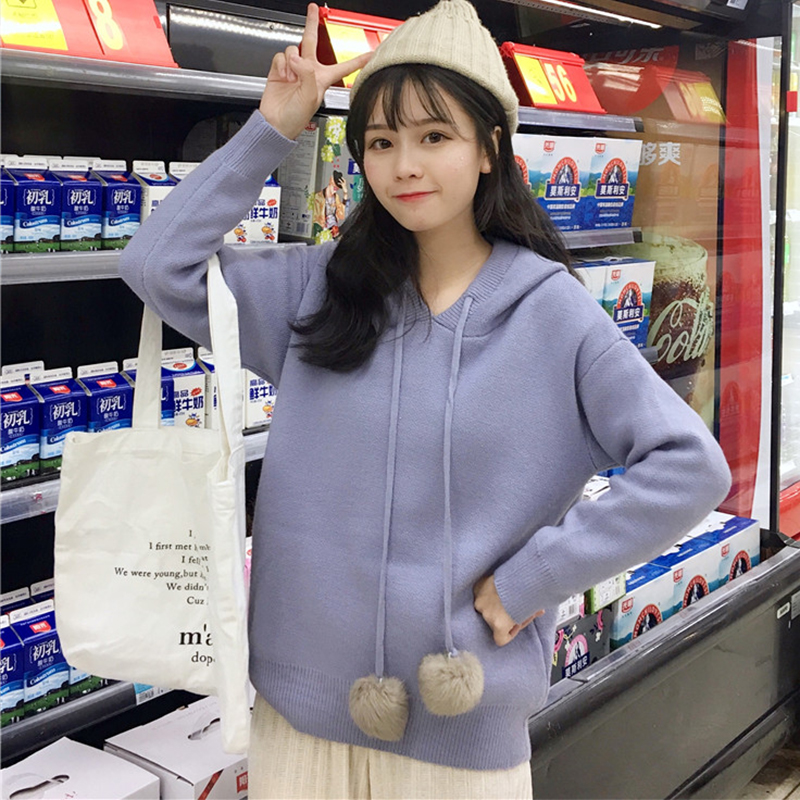 / 學院風可愛套頭毛衣外套女秋冬裝2018新款韓版寬松連帽毛球針織衫
