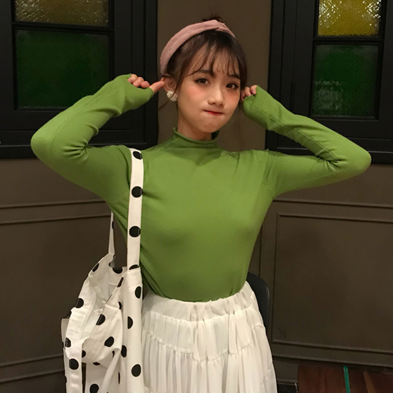 韓版小高領T恤修身顯瘦針織打底衫女秋冬裝新款時尚白色長袖上衣