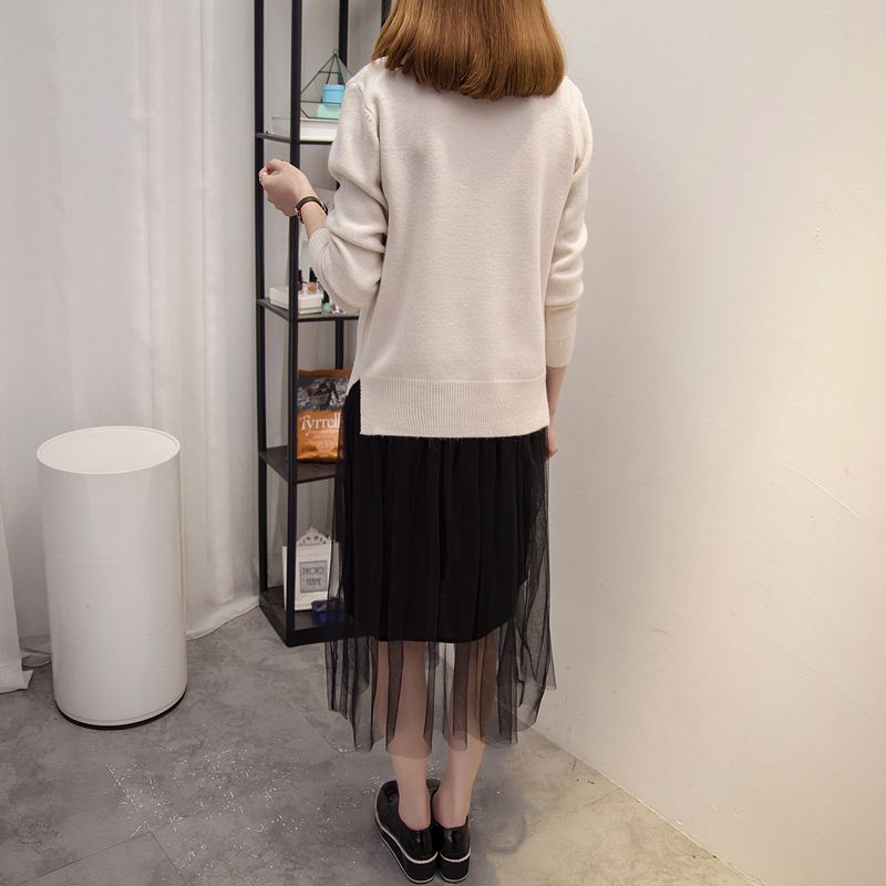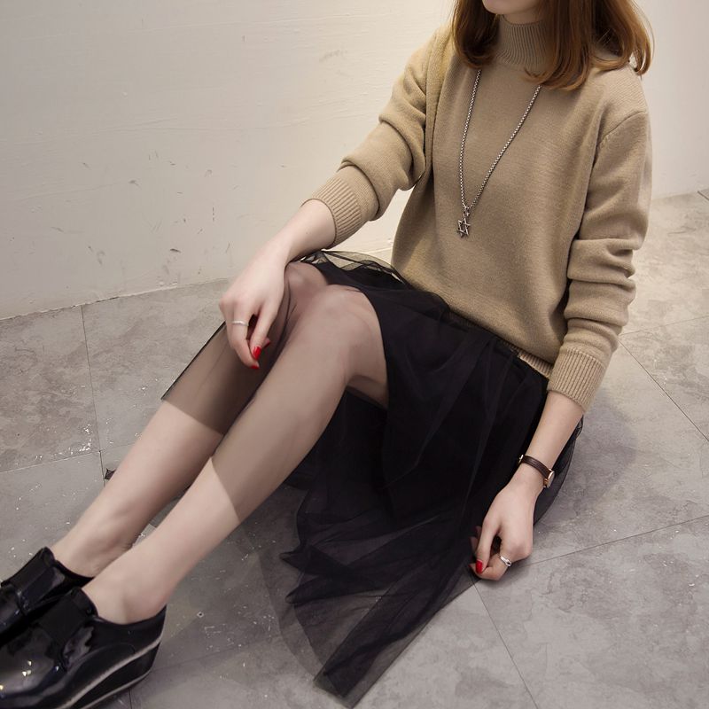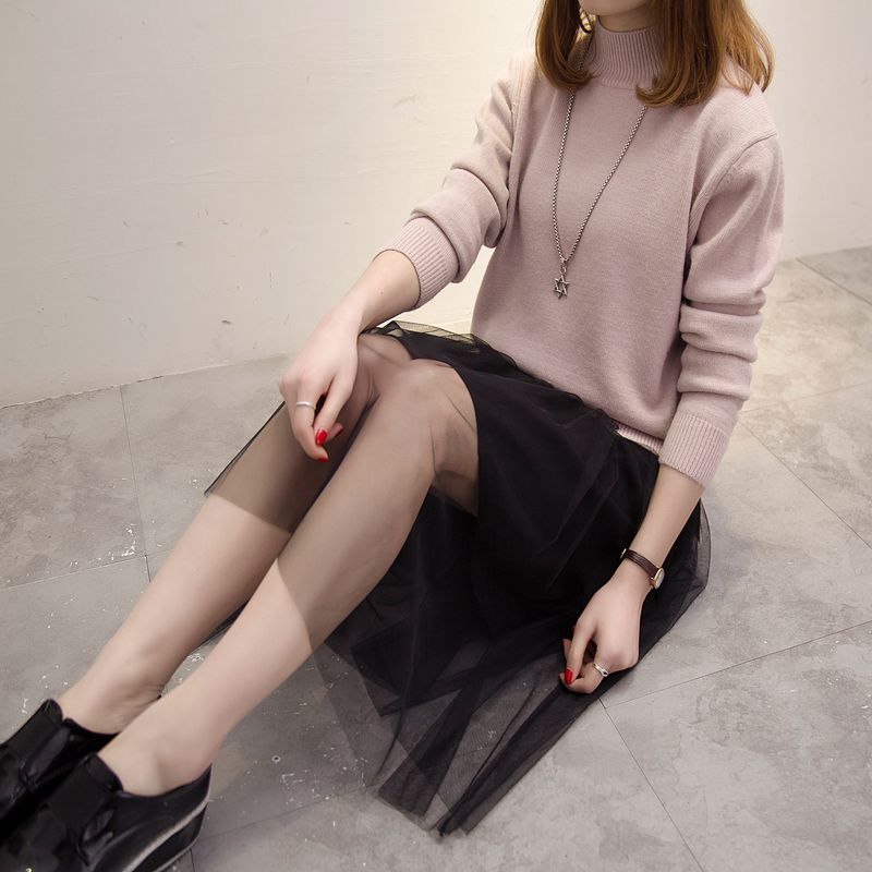 / 半高領針織衫秋冬季新款韓版打底衫雪紡連衣裙冬季新款毛衣女